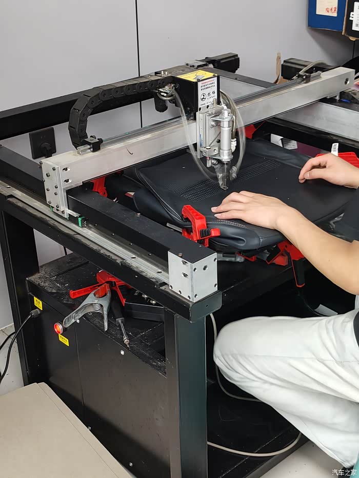 我的20款,座椅皮子不带透气孔,还得打孔。这道工序比较费时间,一个座椅大约要半个小时。