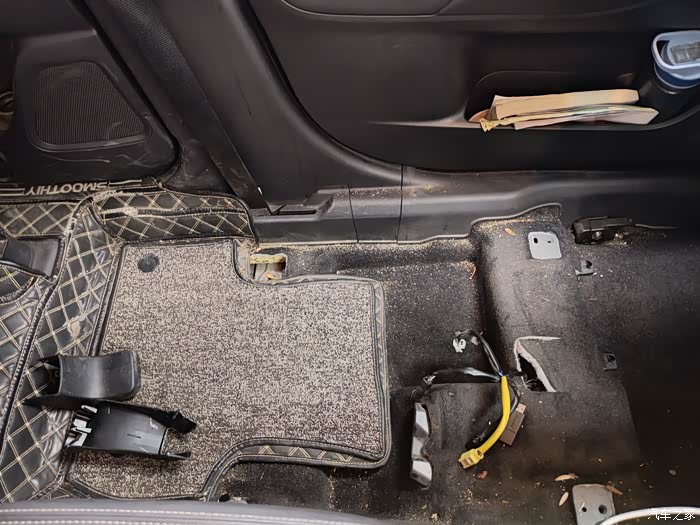 主驾座椅拆了,底下没眼看,小伙子顺便用吸尘器把卫生死角都清理了一下。