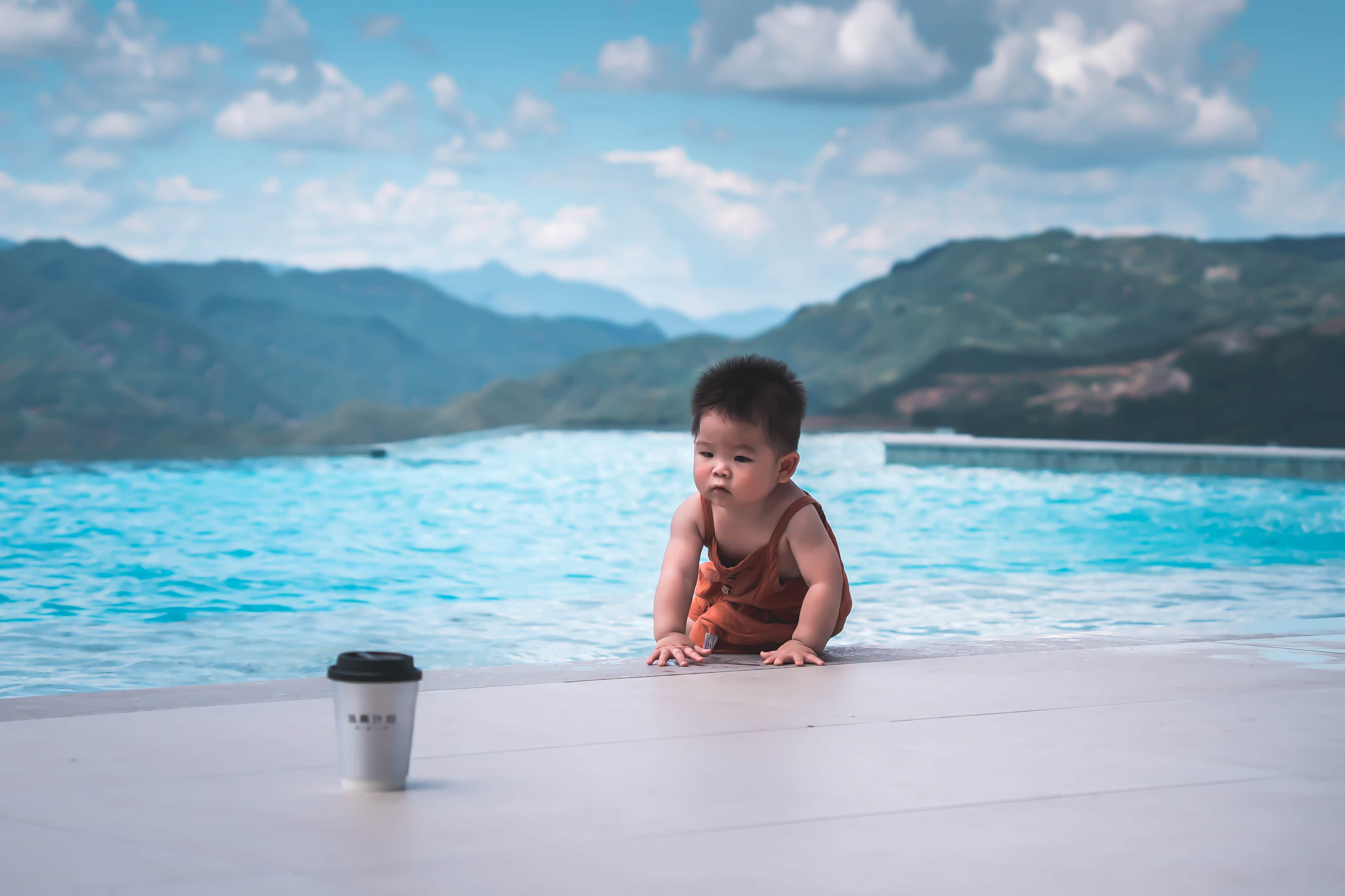 景区依着山体而建的玻璃窗框出天空的形态,就像是长在山顶边边上的一个观景台!眼前视野开阔,风景一绝,真的很久没见过那么好看,一大团一大团的,白白胖胖的云朵了,这里还有一个游泳池,要浅边,宝宝刚好可以坐在玩水,太快乐了!