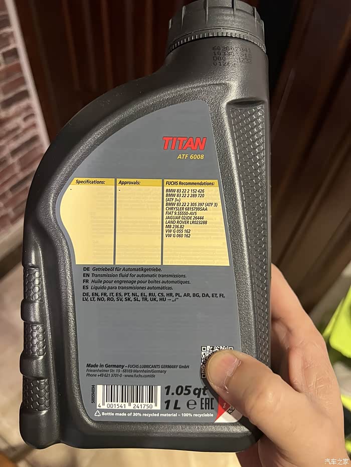 福斯6008,适配ZF采埃孚8速,宝马捷豹都适用,多买了6升出给需要的车友,正好一次重力换油的量