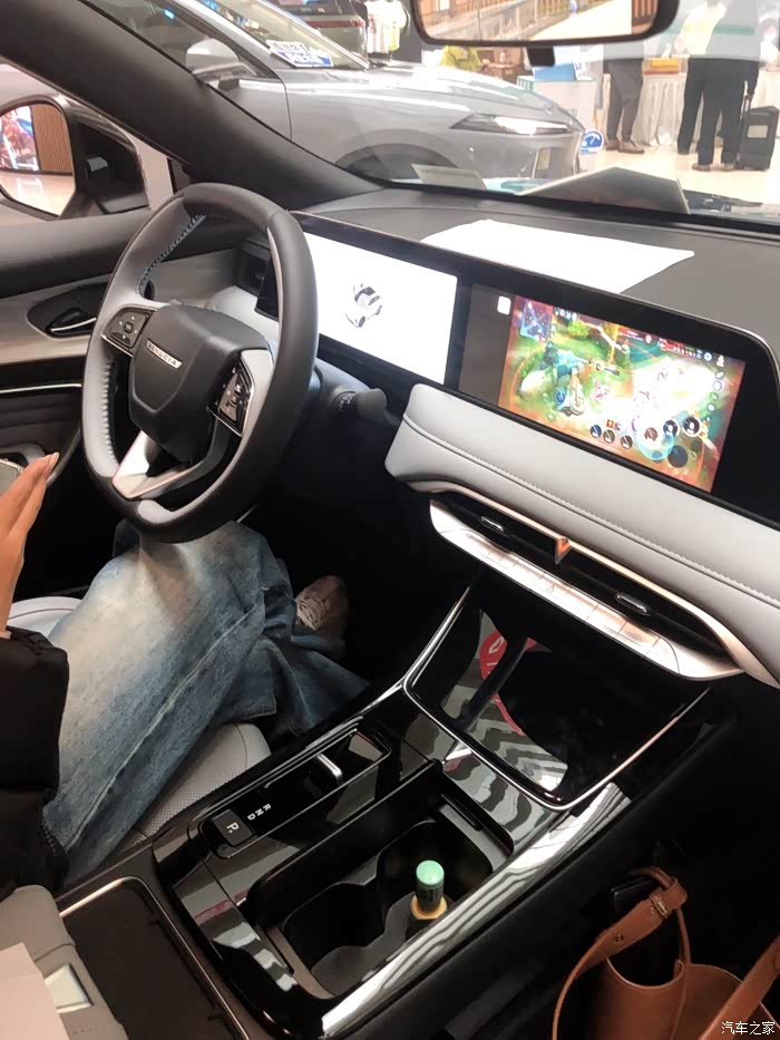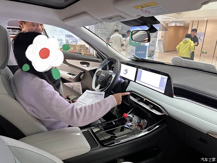 将钥匙交给售后顾问后, 我踱步至展厅。 两台光彩夺目全新启辰大V DDI正静静停驻在C位,贯穿式前灯如星轨般延伸至车侧, 熏黑立体中网搭 配悬浮车顶! 相比我的燃油版更显凌厉动感。 坐进车内, 双12.3英寸悬浮屏与极简中控台瞬间抓住眼球, 而且还接入了DEEPSEEK人工智能的Ai工具,蓝灰拼色的零重力座椅贴合腰线, 门板处新增的菱形绗缝工艺透出轻奢质感。最让我心动的是全景天幕下通透的空间感,配合64色氛 围灯带!仿佛将科技馆搬进了驾驶舱。
