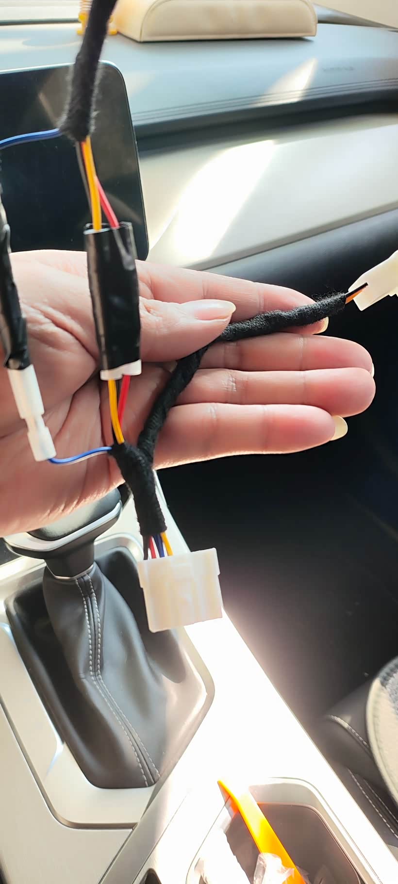 这根短的接回原车前阅读灯,另外一头接后阅读灯插头