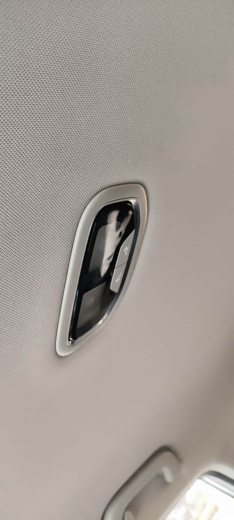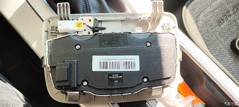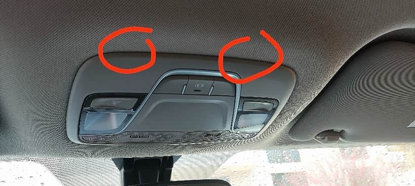 首先把前阅读灯拆下来,这灯有4个卡扣,用店家配的撬棒撬起这2个位置,然后用力往下拉一下就出来了,注意别把卡扣蹦出去,我的第一次拆,蹦出来2个,不过用手伸进去摸回来了。