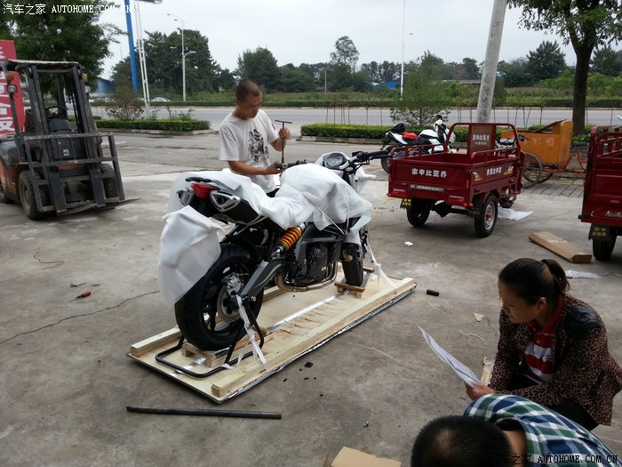 最近一段时间都是连阴雨,12号早上起来,天空淅淅沥沥地下着小雨,只好焦急地等待雨停。到十一点多,看雨小了,赶紧叫上朋友驱车直奔店里,老天爷长眼,从我到店里拆箱装车到一路跑回家竟然都没下雨,第二天又开始下一直下到前天。我到店里后,淡水湖泊骑着他的BN也赶来了。