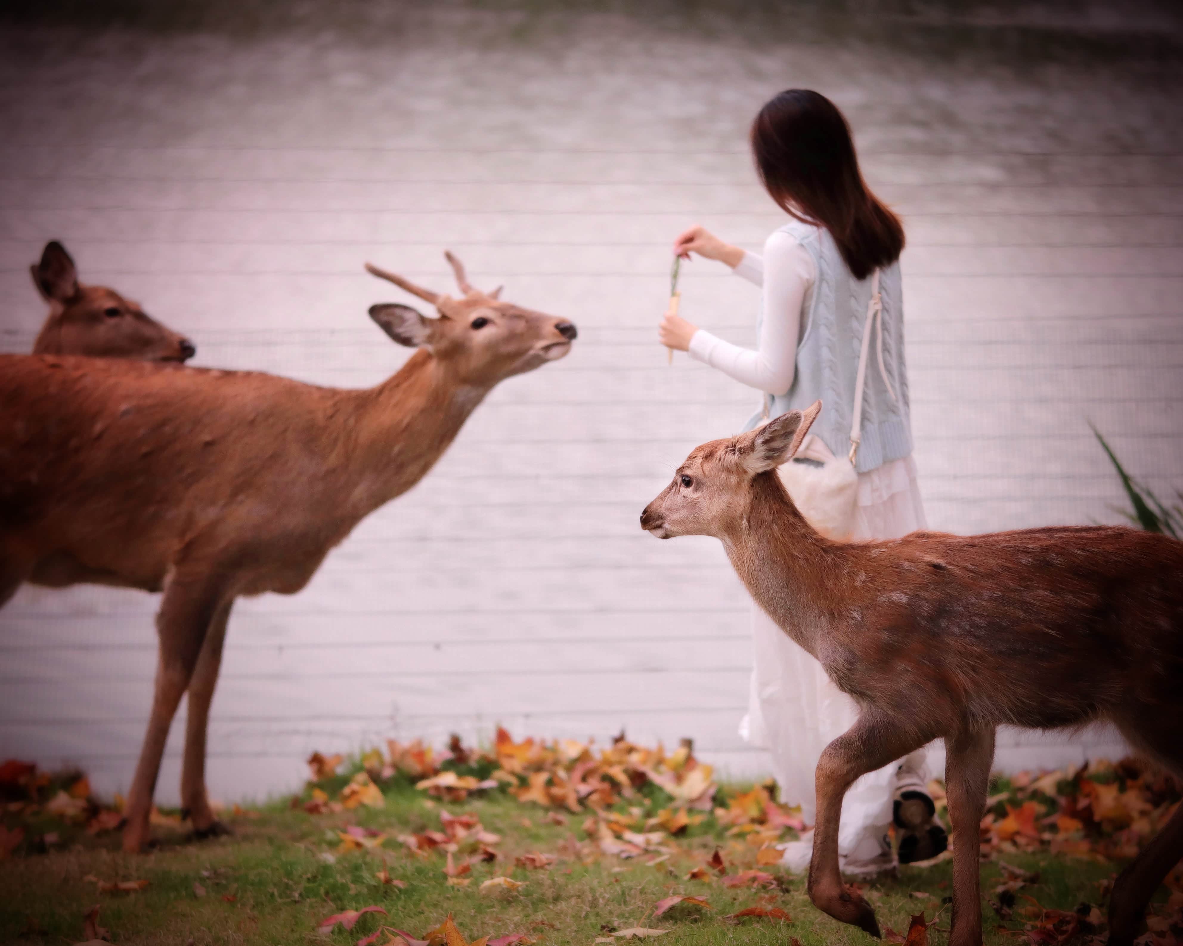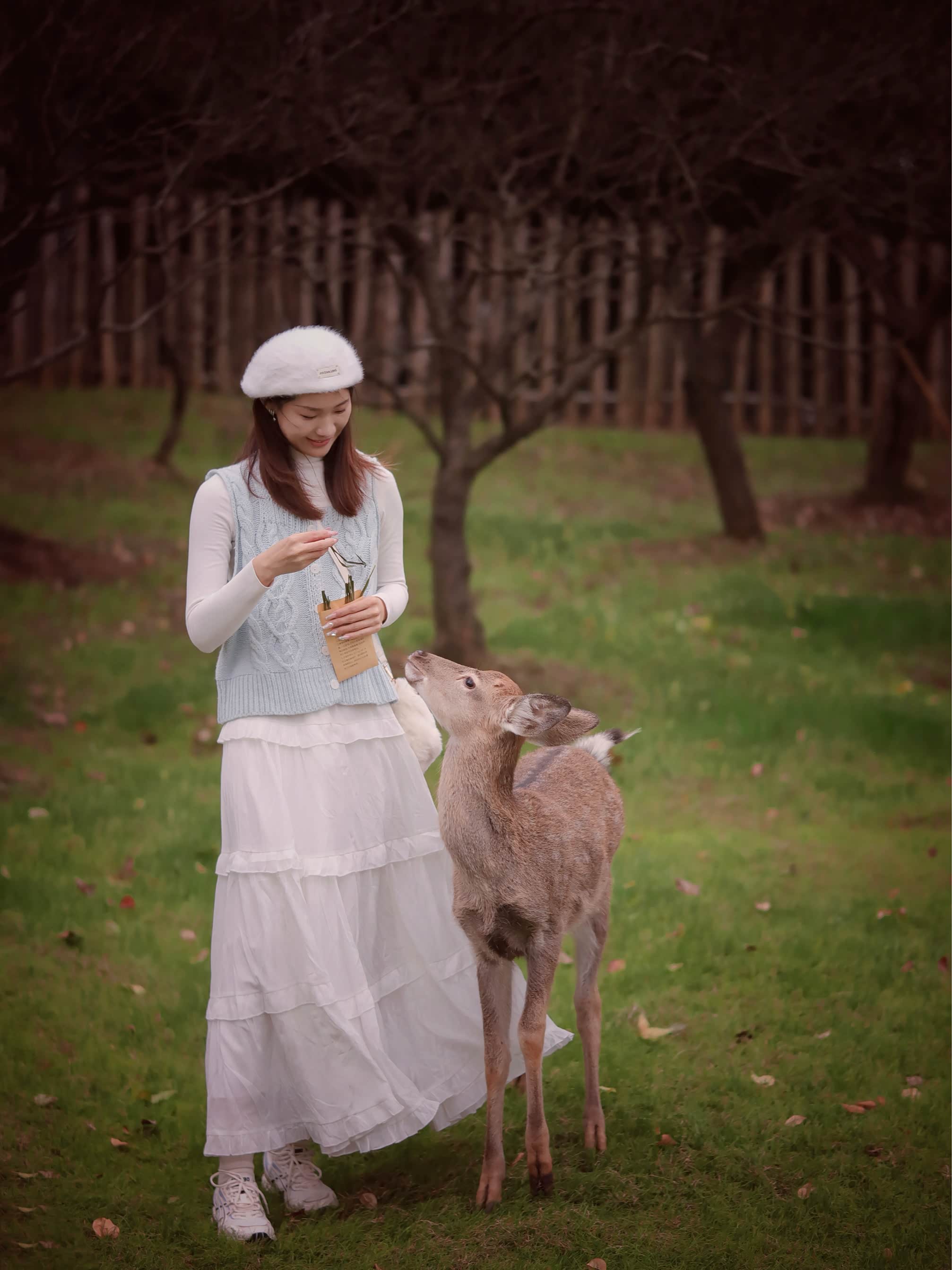 鹿苑的梅花鹿也很可爱,在草坪上互相追逐,投喂完它胡萝卜还赖在我身旁不走。