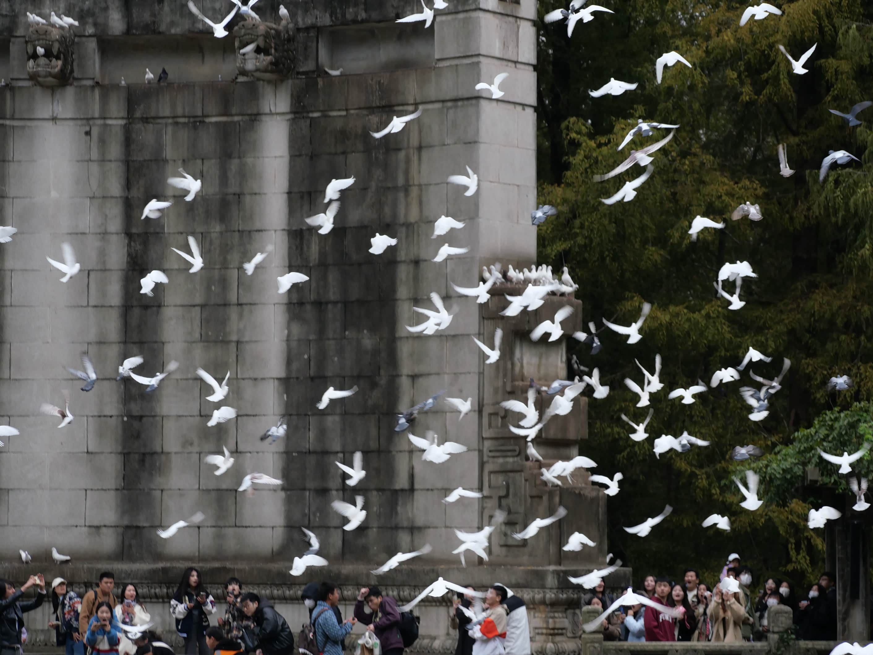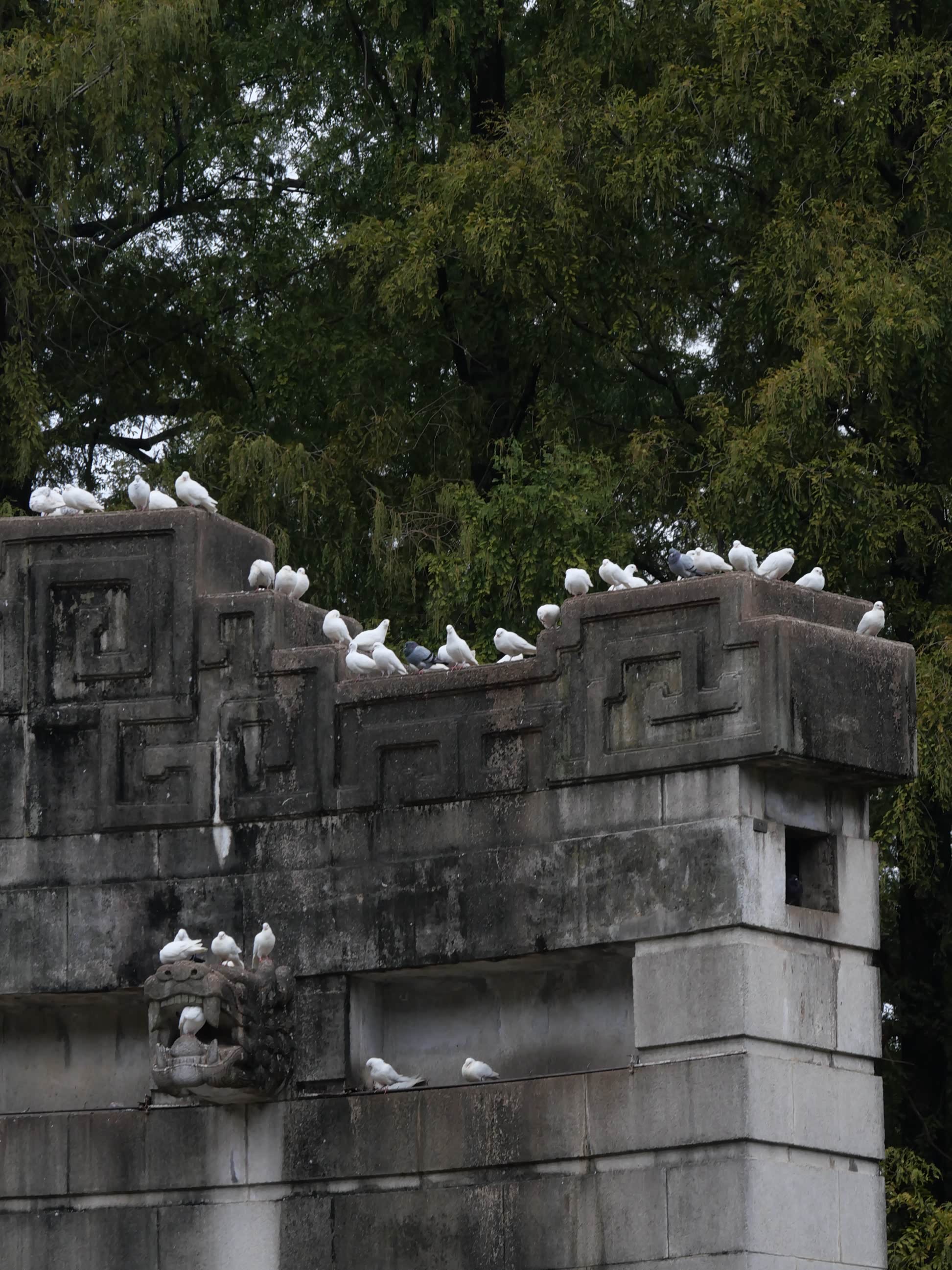 晃悠到了音乐台,鸽子扑棱棱飞起来又落下,一切都是那么的惬意。
