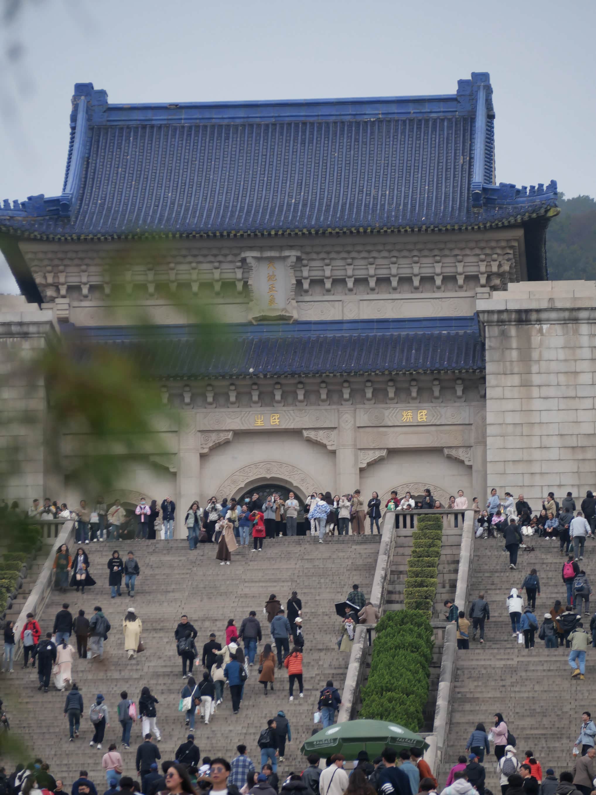 中山陵的台阶,爬得我直喘气,回头一看,梧桐叶正黄得扎实,远处的城市轮廓清晰,气派确实不同。