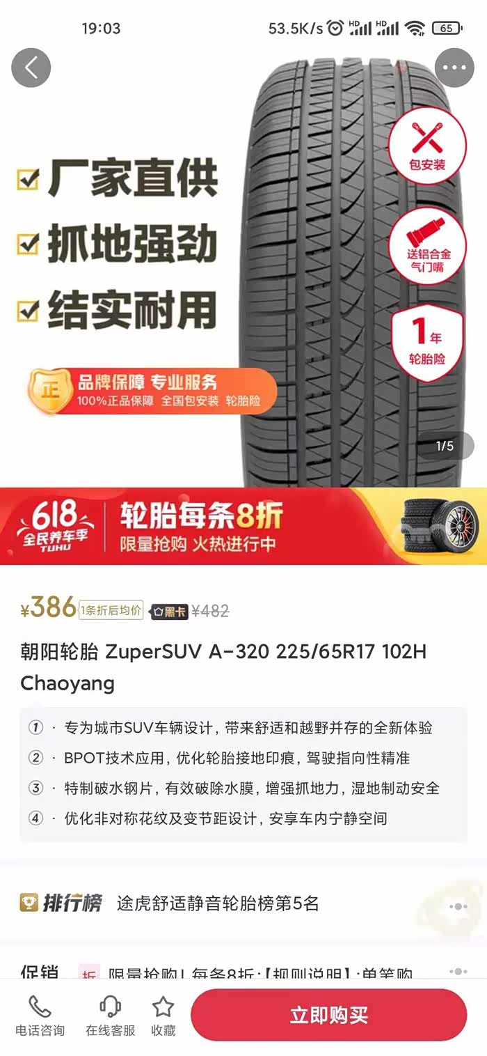 和楼主一样的轮胎尺寸,上朝阳吧,固特异爱不起来