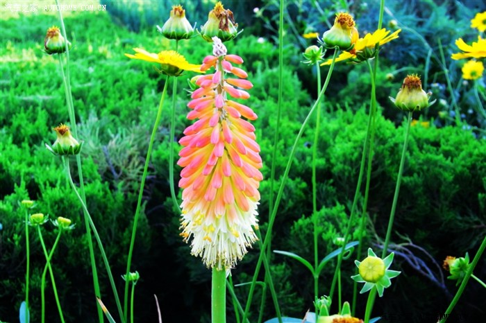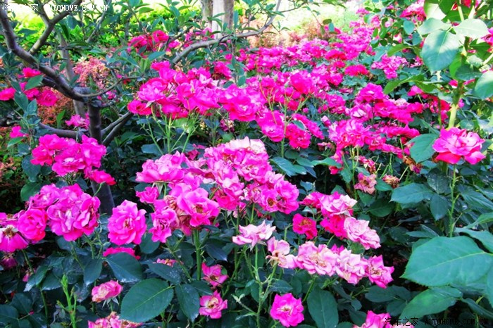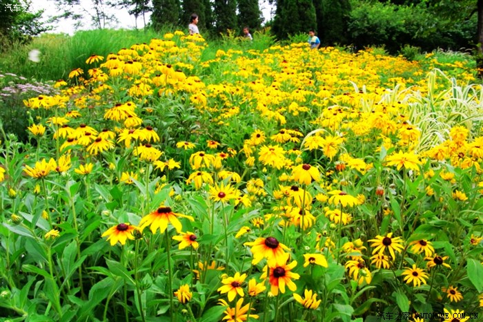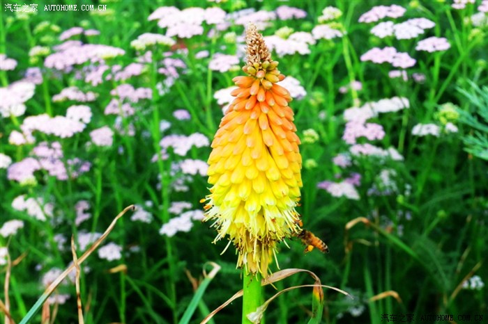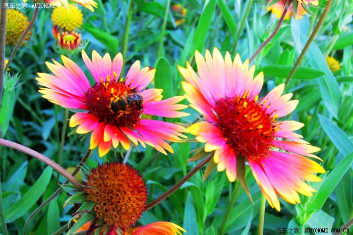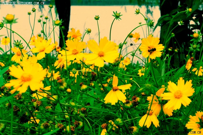 到处开满了各式各样的花,蜜蜂“嗡嗡、嗡嗡”的忙碌着。