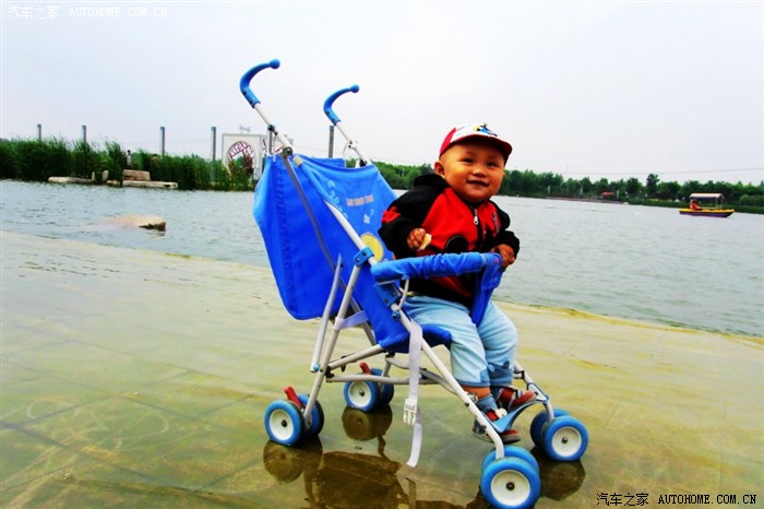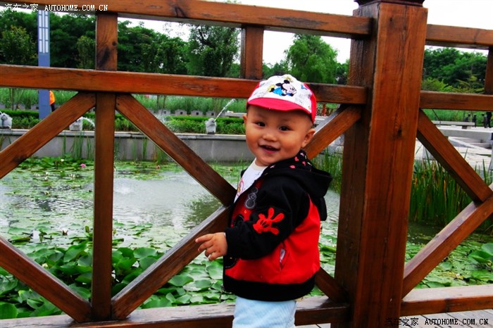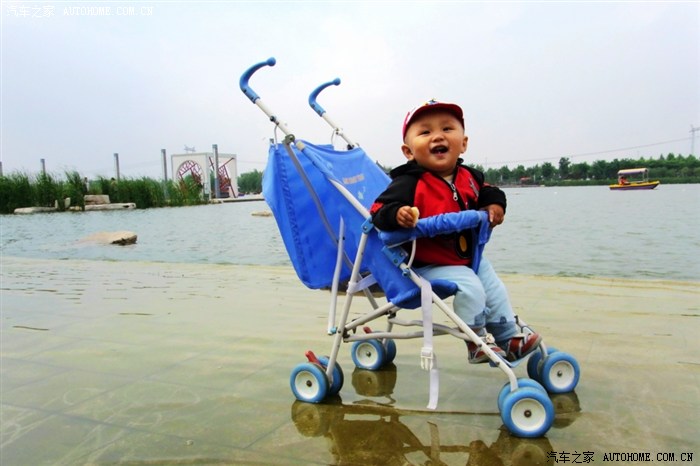 大雨过后,湖水明显多了,许多地方漫到了地面上,龙儿天真的笑着。