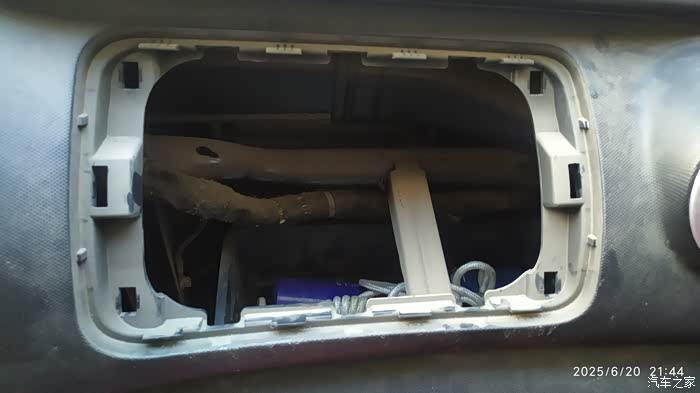 这里面空间很大。没有气囊,这里其实可以设计成一个储物盒。你这个空间仍然没有最大化利用。我现在简单铺了下,然后用来装几本书。在看里面怎么能再优化,外面怎么做个合适的、可以固定上面、下面拉开的盖子。如果车友们有好的想法,可以提供下。
