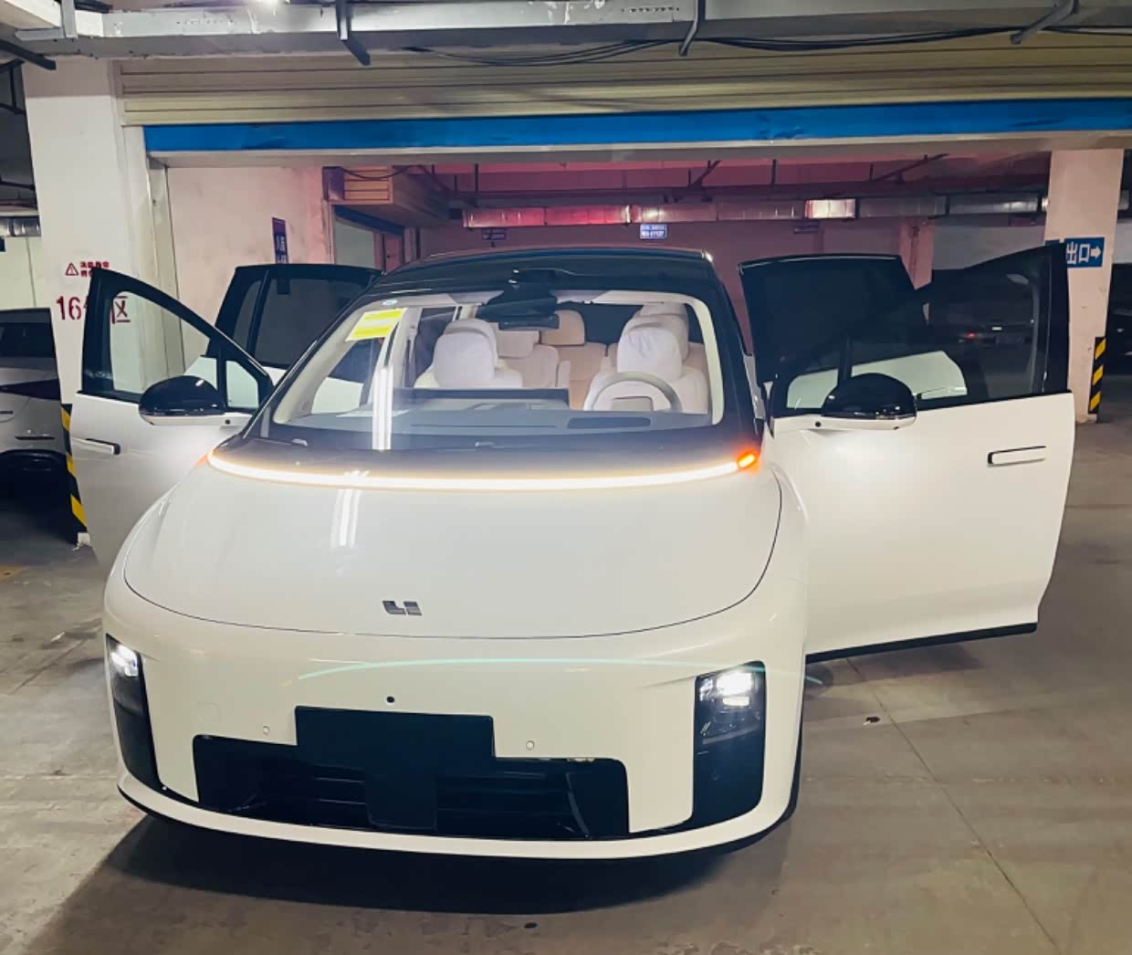 交付现场送了相框和购物袋,特别提一下理想广州荔湾门店的交付服务是真不错,我是晚上8点到店提车,还准备了饭点,虽然不及鸿蒙大饭店,但也是很不错的,贴心。由于提车手续我提前在app上已经完成了,现场提交身份证,打印临牌,看了一下外观,测试一下车内功能,交付耐心跟我讲解了车辆使用注意事项,激活就可以开回家了,提车是满电交付的。