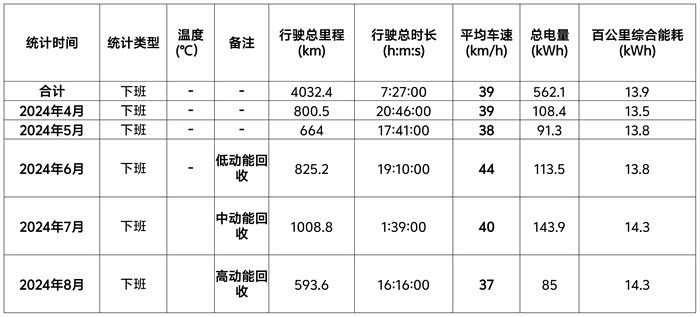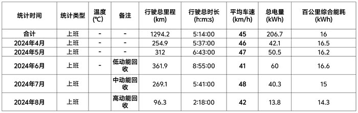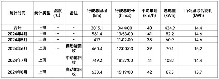 以下是小弟关于上班高速通勤路线的一个能耗统计情况