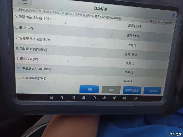 大家好,我是去年11月购入的奔奔E-satr国民版,现在车子使用半年以来开到近5000公里,现在车子出现过车门锁异响,电子换挡无法换挡之外,现在又出现了新的问题,车辆突然无法正常启动,仪表出现蓄电池故障灯,制动系统故障灯和动力系统故障灯(摘自说明书:红色灯电亮,系统严重故障,三级故障,车轮失去动力输出),然后锁车,重启车辆,车辆可以启动但是档位无法换挡,蓝色行车电脑换挡区域闪烁,插入车载电脑诊断,出现十多个故障码,请问大家的车有过类似的故障码?求大神指点迷津,谢谢。车子是慢充版的,电池是宁德时代的磷酸铁锂。小蓄电池检查过不亏电,能正常启动车辆。