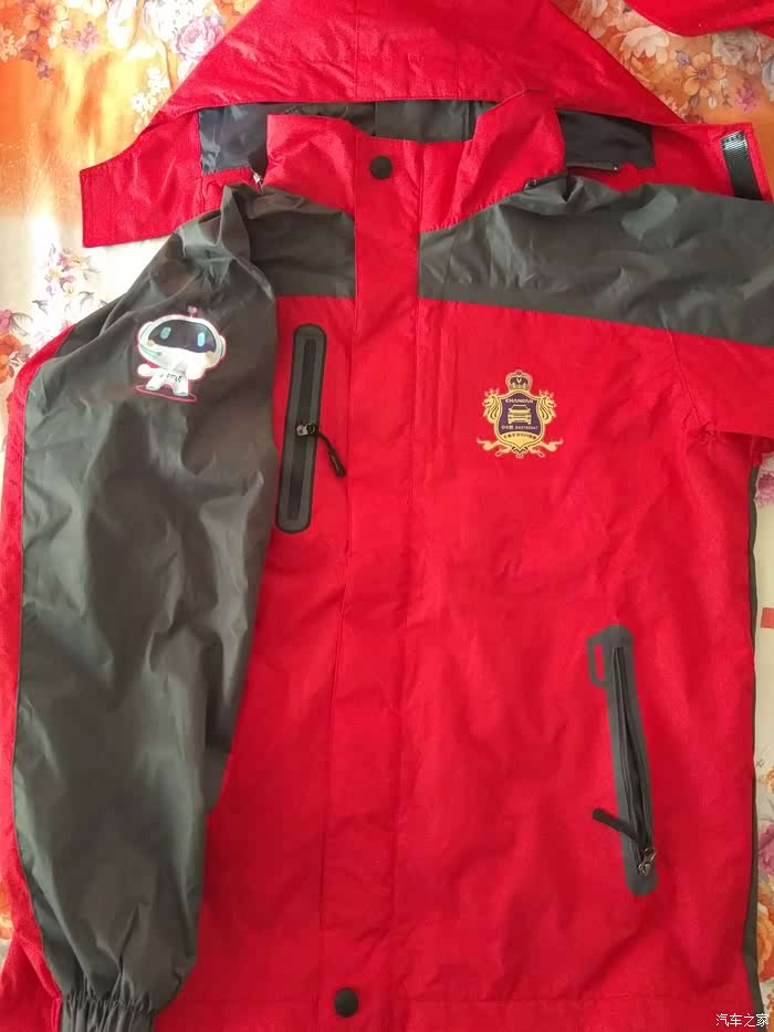 我们车友会定制的会服,鲜红色显得更加醒目 上面还有小安安
