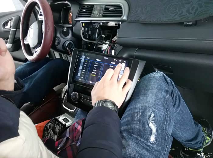 外面实体店过来的小伙计加装大屏导航倒车影像,正拉线的时候。