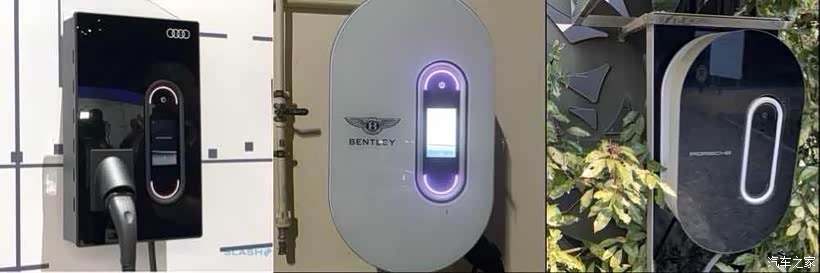 可以看到,e-tron身为奥迪旗舰电动SUV,和大众的充电桩是一模一样儿的。然而,与此同时,德国原厂奥迪的充电桩则是和保时捷宾利是一样的!甚至因为外箱的原因,整体看起来甚至比保时捷和宾利的充电桩颜值还要高!😍
