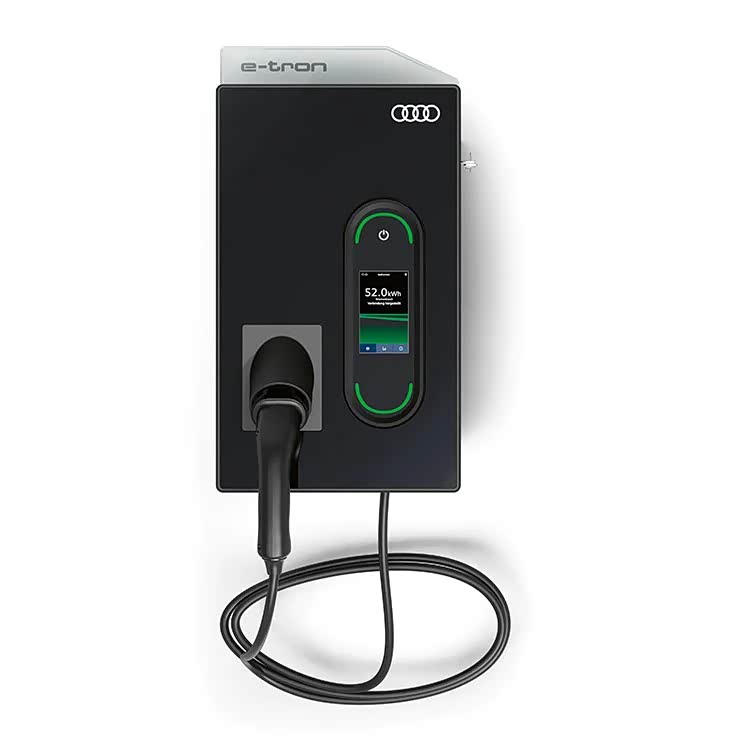 故事要从三年半以前说起,那时候刚刚入手e-tron,因为是买的非官方渠道的车,所以没有送充电桩,要自己买,而我挑来挑去,就看中了视频这款奥迪e-tron原配的22kw充电桩,颜值简直不要太高,而且还是22kw,功率很高,保存下来图片后就找,充电桩盒子找到了货源,然而这个充电桩自始至终都没有找到卖的,才发现奥迪根本就没把这个充电桩引入国内,当时给e-tron配的全都是星星的充电桩。而且国外的e-tron是可以选配第二个充电机,可以达到22kw的交流充电功率,而国内的e-tron都只有一个充电机,只能支持11kw的速度,我也只好作罢,买了个挚达的11kw充电桩先凑合用。😤这个充电桩也就成了一个暂时达不成的小愿望。