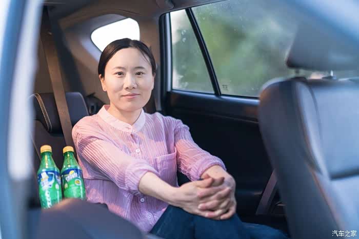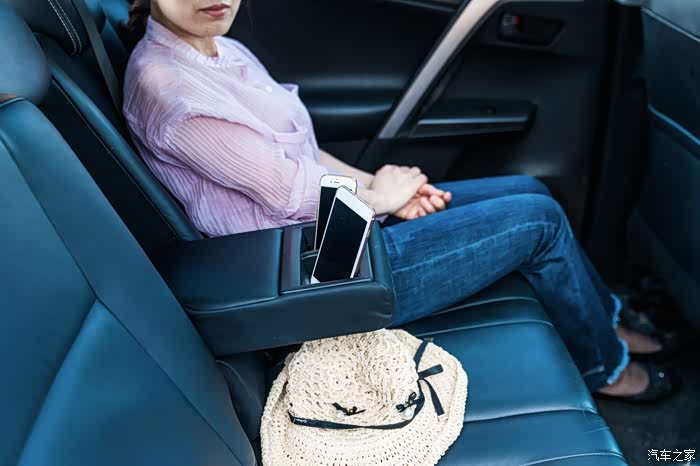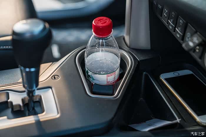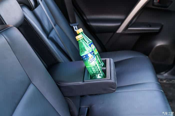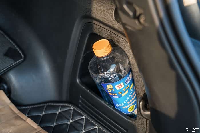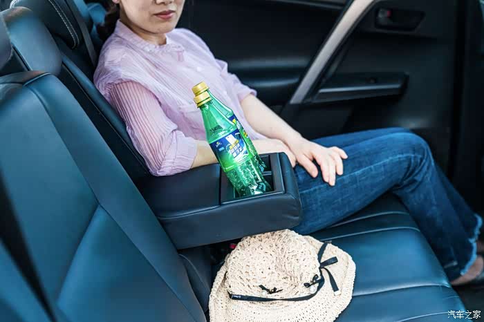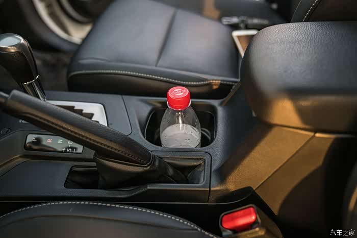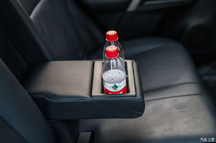 后排扶手换上一般大号瓶装水,就显得很稳固。