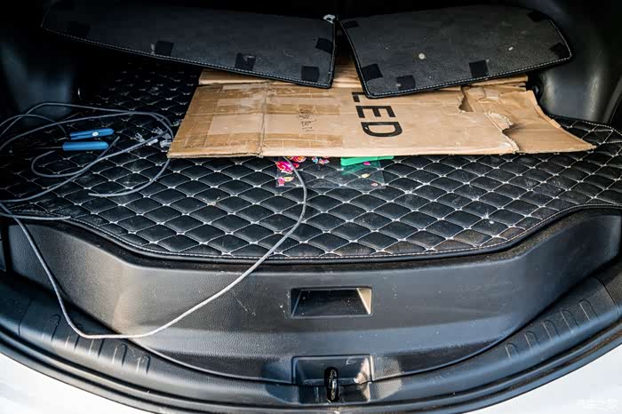 后备箱两侧有储物槽,可以放灭火器或玻璃水