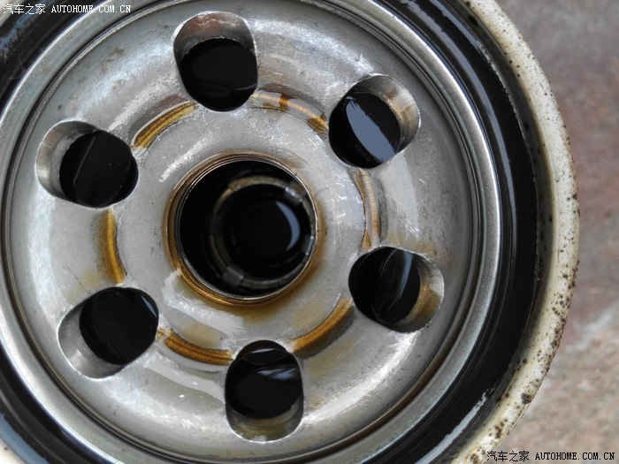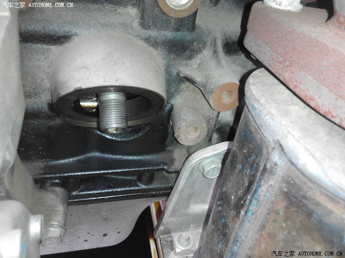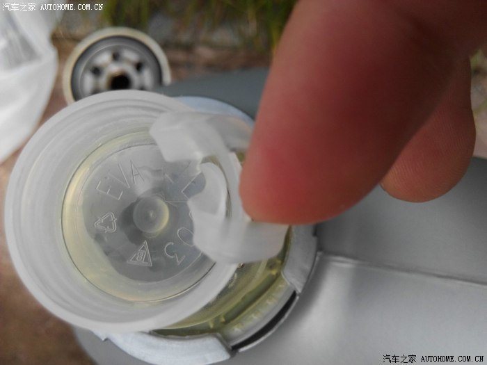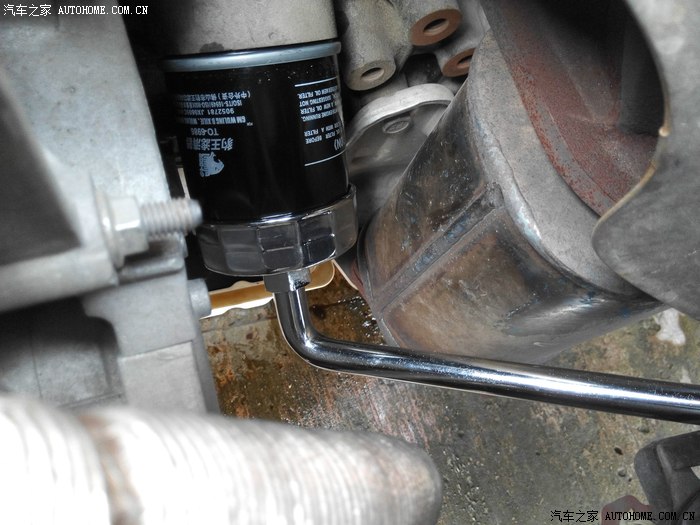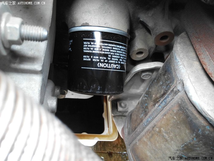 等一会机油放的差不多了~拆卸机油滤芯~逆时针旋转几下~然后用手拧下即可~戴上手套~否则烫手哦