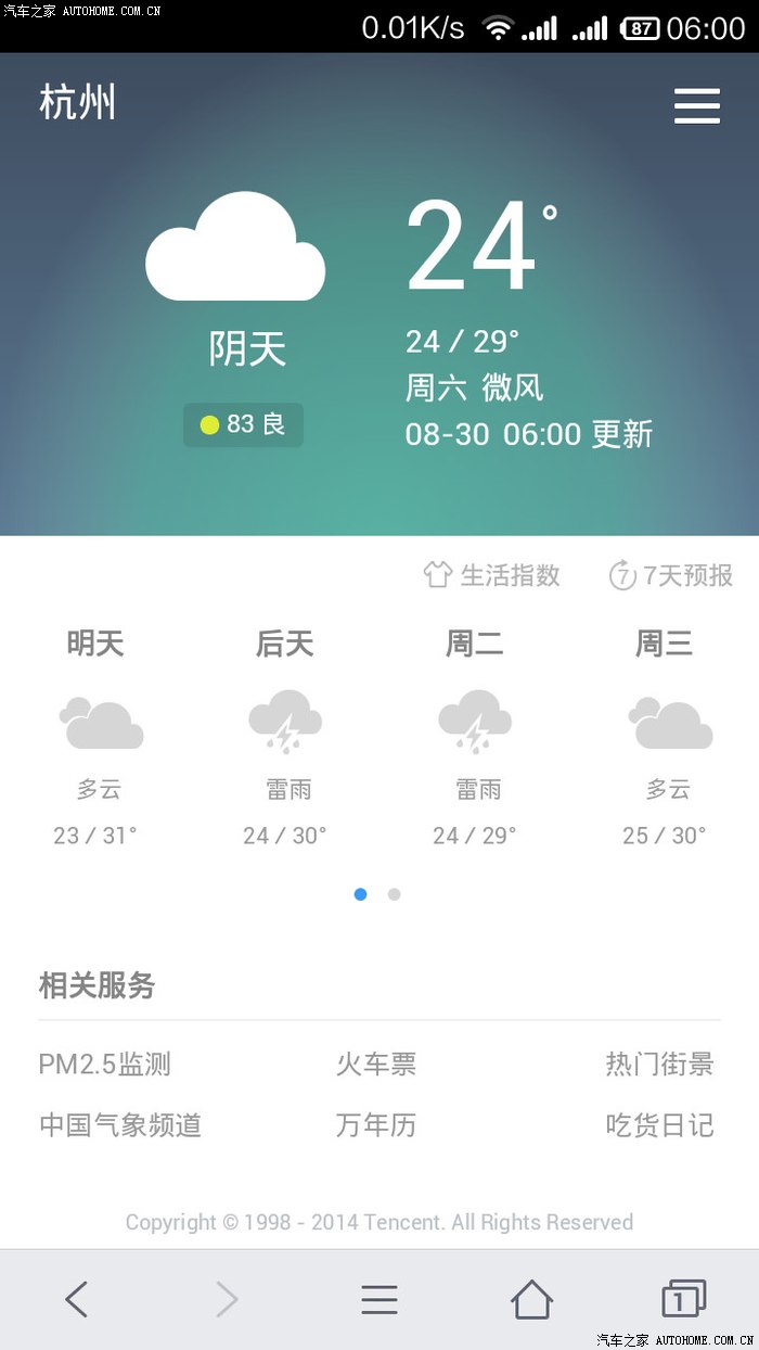 6点更新的天气~不错~没太阳~不热就行