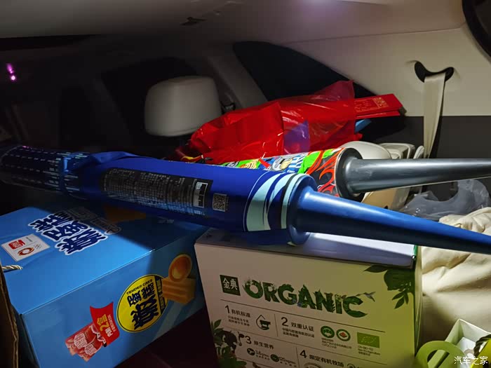 重头戏来了,因为我们就两人,放倒了第三排的其中一个座椅,感觉真的随便放年货行李,反正富裕的很。不像以前的轿车,规划来规划去,这个也不能带那个也不能带。