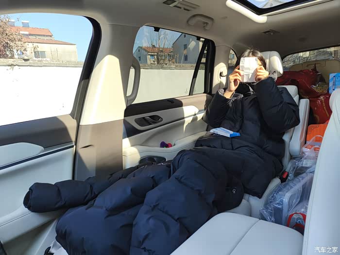 老婆么肯定要整个最舒适的坐姿,副驾和二排直接成床,全程躺着刷手机看剧啥的(老婆满意了,那车子就买的很成功