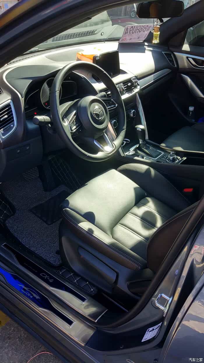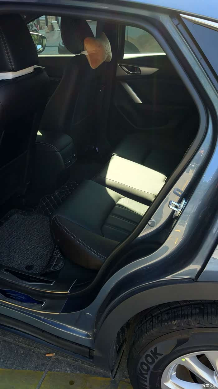 内饰:简单大气,虽然内饰没有外观那么耀眼,但是它的内饰设计,材料质感都不比三十万左右的车差。以及中控按键的位置,操作简单方便,设计的位置更是有利益行车安全。中控屏设计非常人性化。这样的设计不但起到安全行车作用,更是有一种高大上,高档车的感觉,内饰的做工,颜色,材质,质感都非常不错,我个人也很喜欢。前面都是软的,不是硬塑料,这点很喜欢。还有车门扶手设计,朋友的车都是平的那种,感觉都不高档。cx-4的车门扶手就像我叔的奥迪一样高大上。哈哈哈