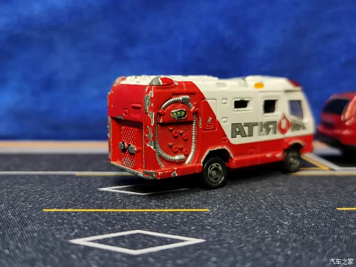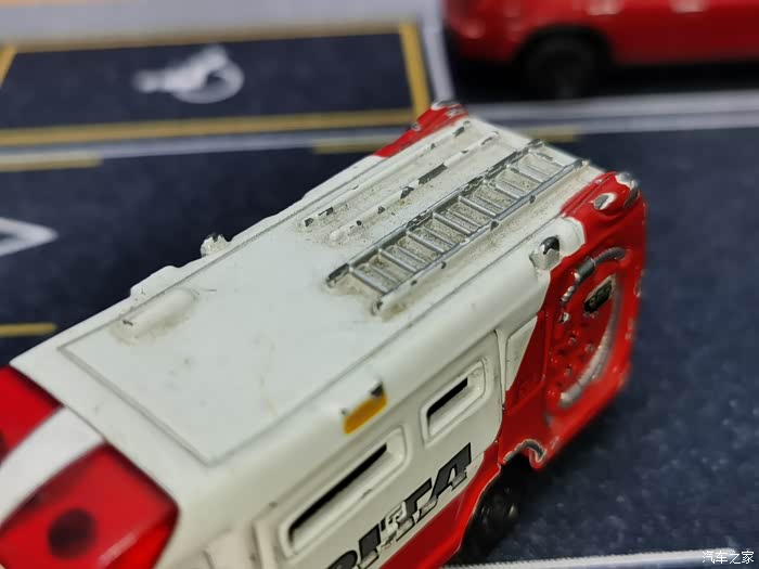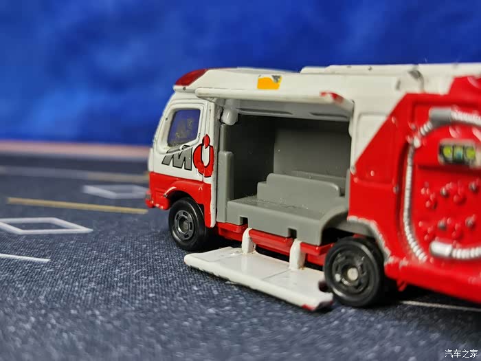 这款消防车模型由多美卡出品,全合金材质,侧门开合,车轮减震。