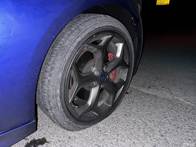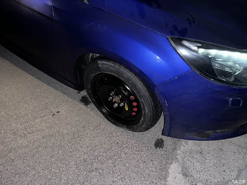 16分钟、换好轮胎、感觉备胎也有点却气。 凌晨4点、完全没有补胎加气的