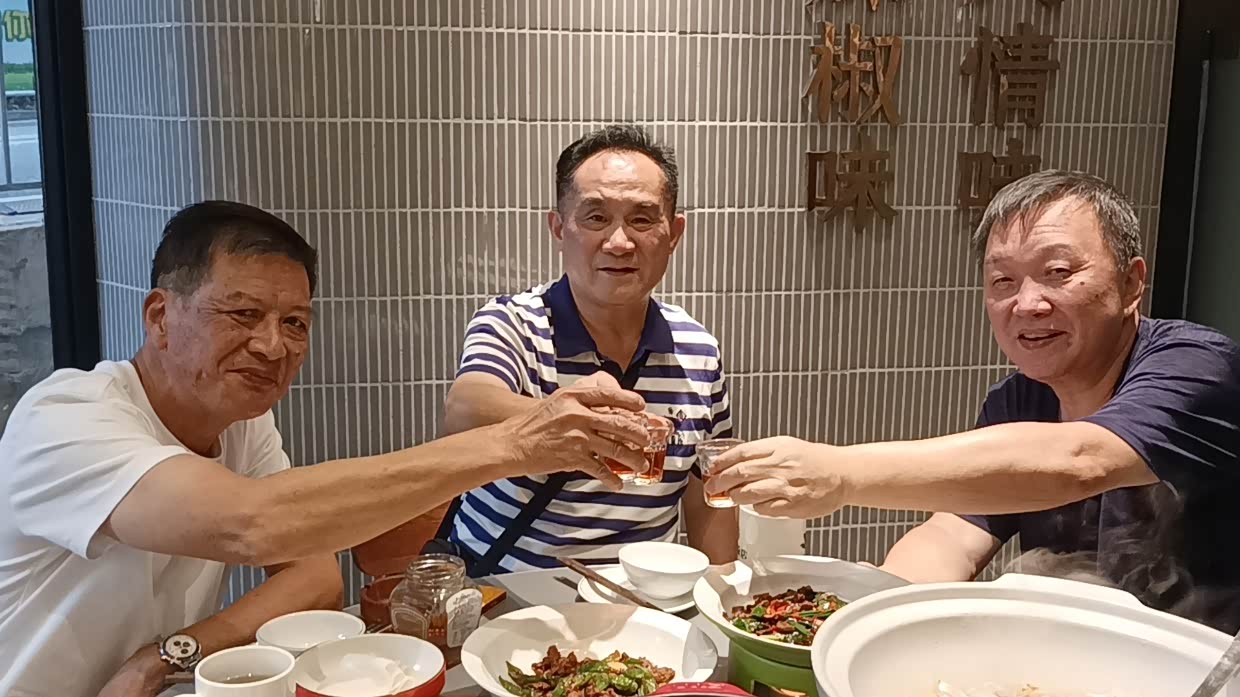7月9日:早上7:35出发,第一站长沙市,沿着高速,中午在湖南境的小塘服务区休息吃午饭。休息后继续前进,下午4:15到达长沙市,入住达颐荷酒店。进入长沙时车上的温度显示41度,一下车就是一波热波迎面扑来,就像进入火炉似的。太热了!后与高中同学联系上了,同学招待请吃晚饭。近五十年的久别同学情,情在酒中!