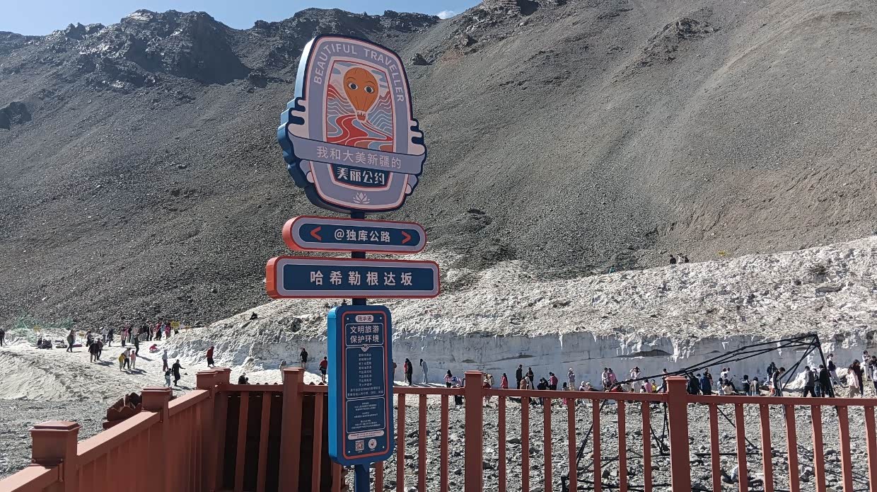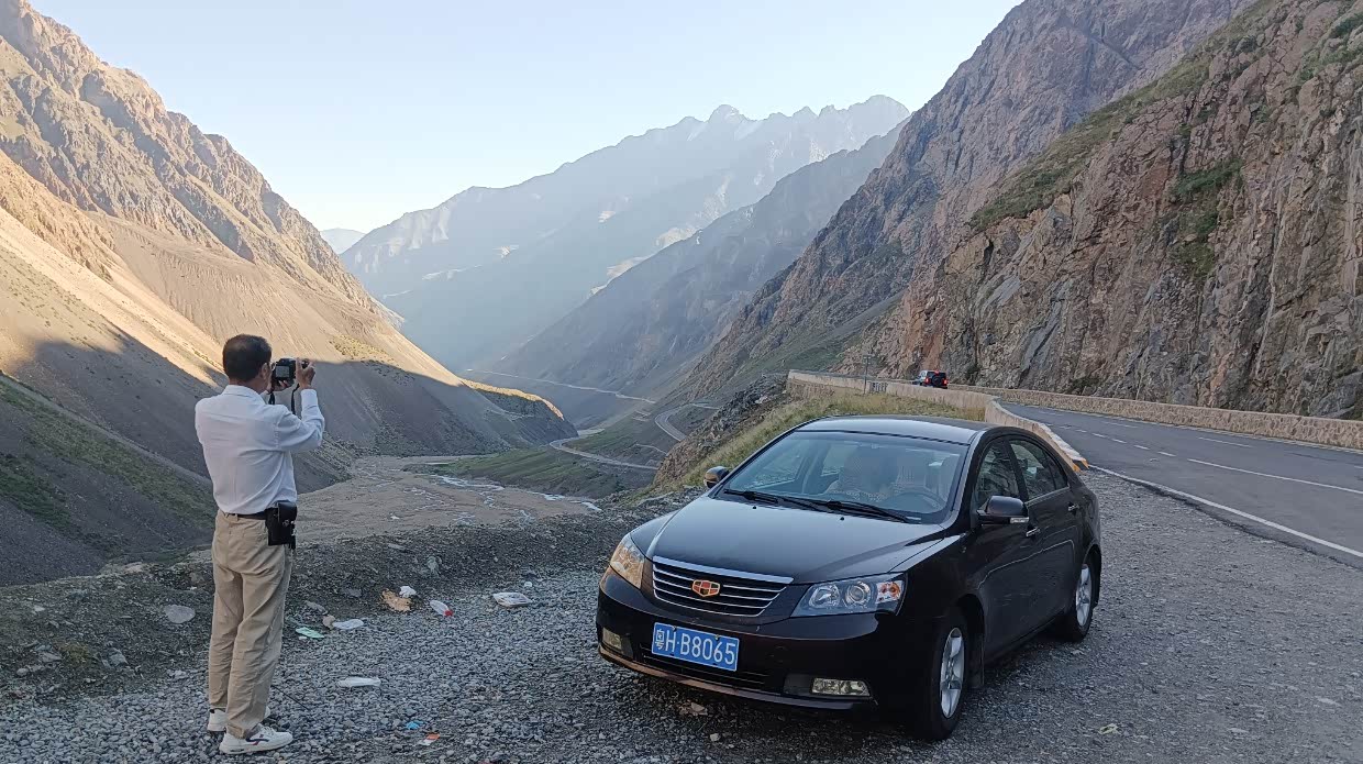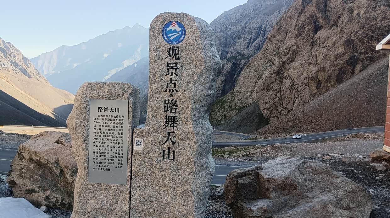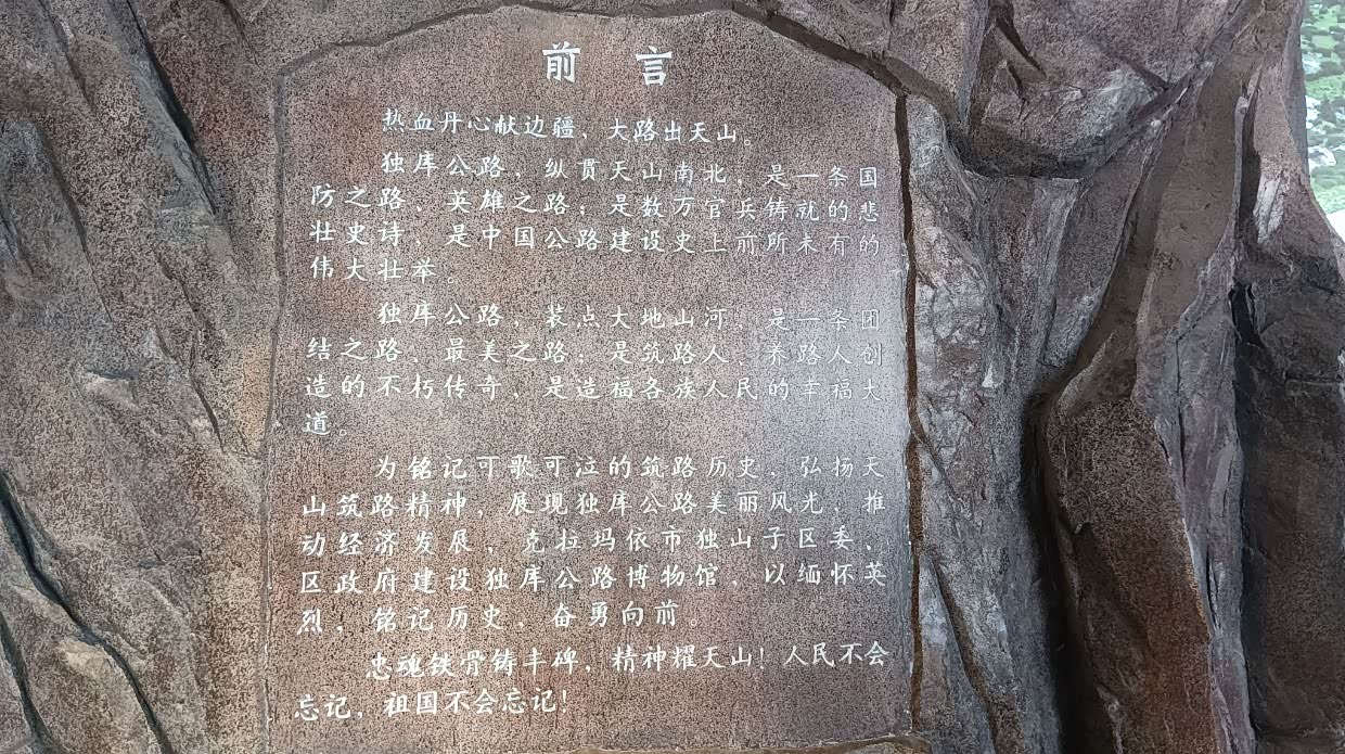 8月5日:早餐后就出发去独库公路,沿着独库公路前进,从28度到零下1度,风景独特,七拐八拐的,有积雪,有天瀑,有冰川层。到了独库公路烈士陵园,去拜祭了烈士!然后离开独库公路转向尼勒克县,下午四点到了预定的捷晨宾馆,状况不理想,由于累了,也将就一晚算了。离开时向老板提出了意见,希望能改进。