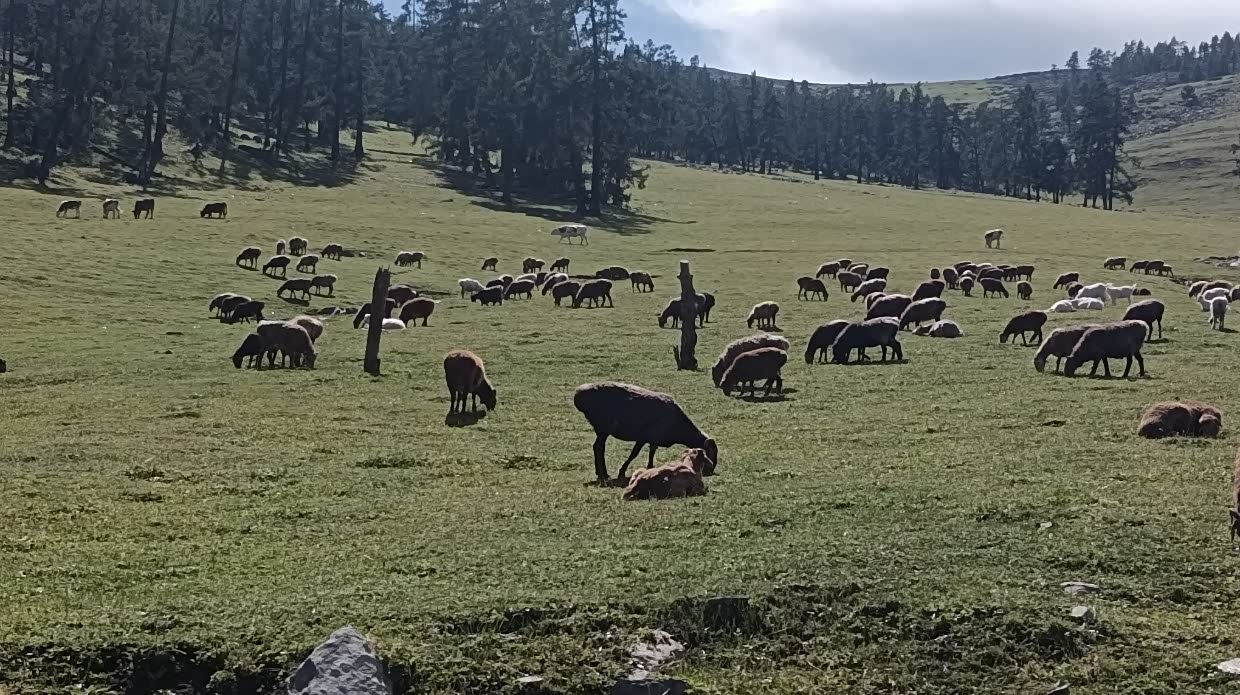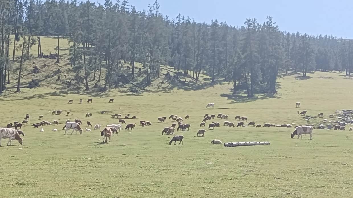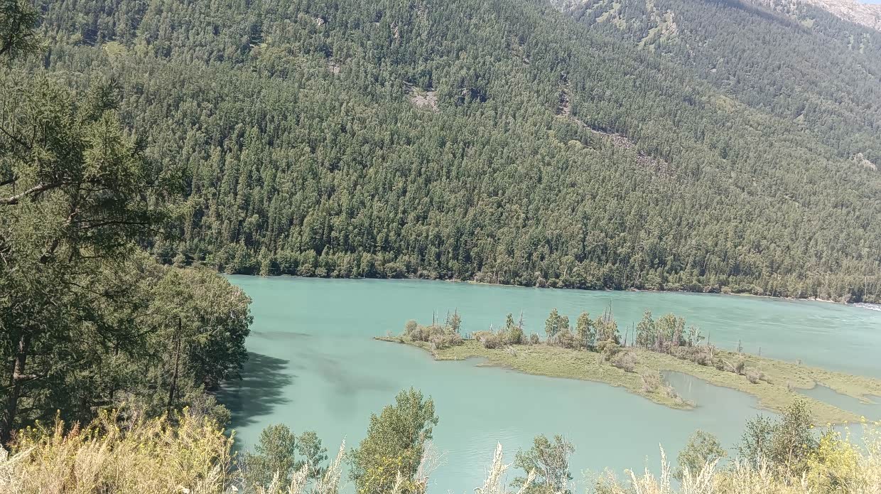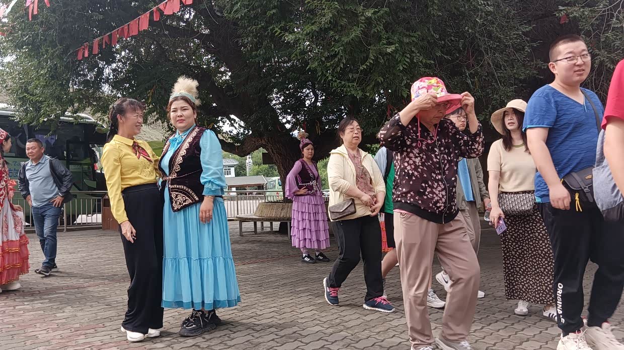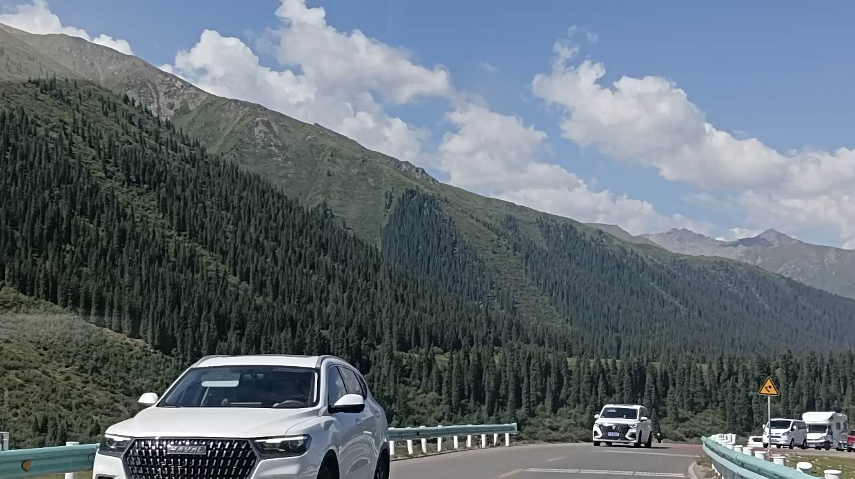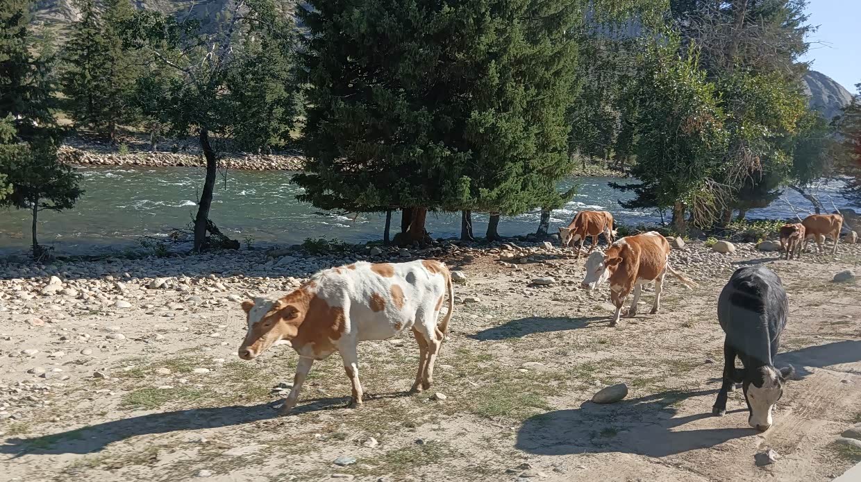 7月26日:去喀纳斯,沿途风可见牛羊马,可能海拔问题,我的帝豪在上坡时出现了无力,本时三档可上的坡,要换到二档甚至要一档才上得去,这是从来没有过的事。 我的车也会高反,哈哈!11:40到达喀纳斯景区停车场,好多车呀!排队进景区等摆渡车,人多的就像赶羊一样,一群群的上车。哎!学校放假了出游的人太多了。下午四点出了景区。在停车区,遇到两个做导游的管家司机,和他们聊了会,他们说最好去四星景区,人不多,玩的自在,大部分的景区都是在同小异。实际上路途中更多景。他们的意见是正确的,后来我们就少进景区。然后我们就去布尔津的冲乎尔镇布拉合民宿入住。主人是哈萨克族人,很是热情,房间十分干净。女主人叫凯丽玛,一儿一女,儿子刚大学毕业并考上了禾木的公务员,不在家。女儿上初中,男主人不在家去做装修工程。女主人汉语讲不好,靠女儿翻译。晚饭女主人给我们做了好吃的牛肉土豆玉米汤,炒包菜和面片。摆在院子里吃了餐温馨的晚饭。和女主人认姐妹,看她挤牛奶,院子里种了菜。