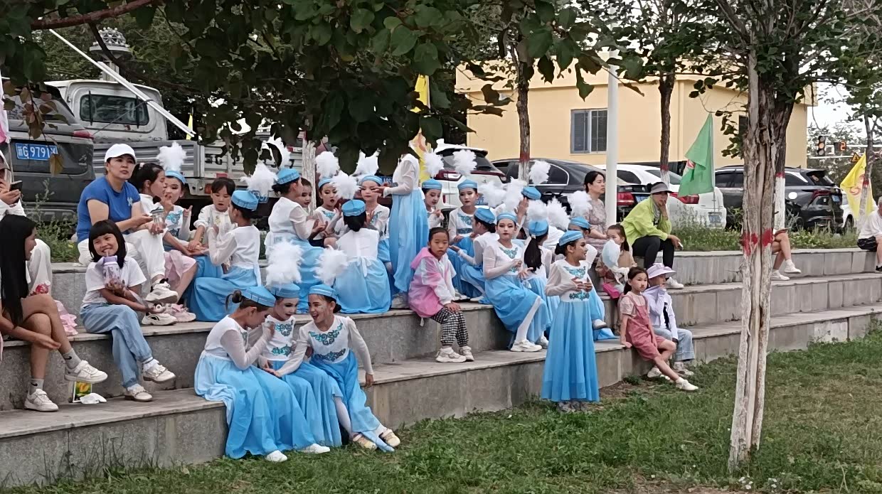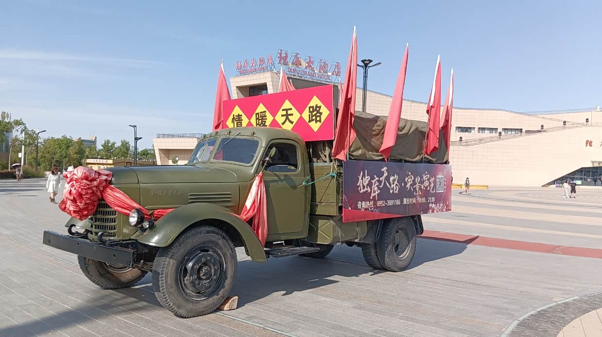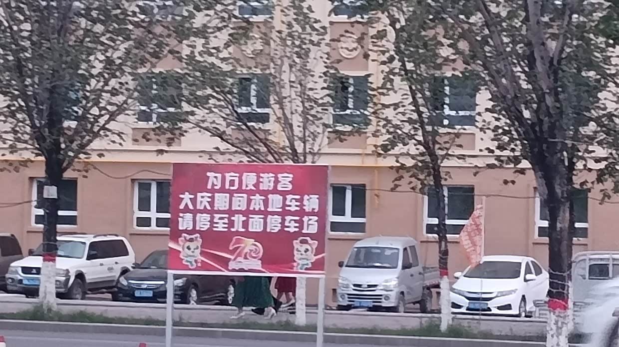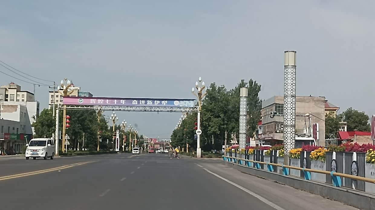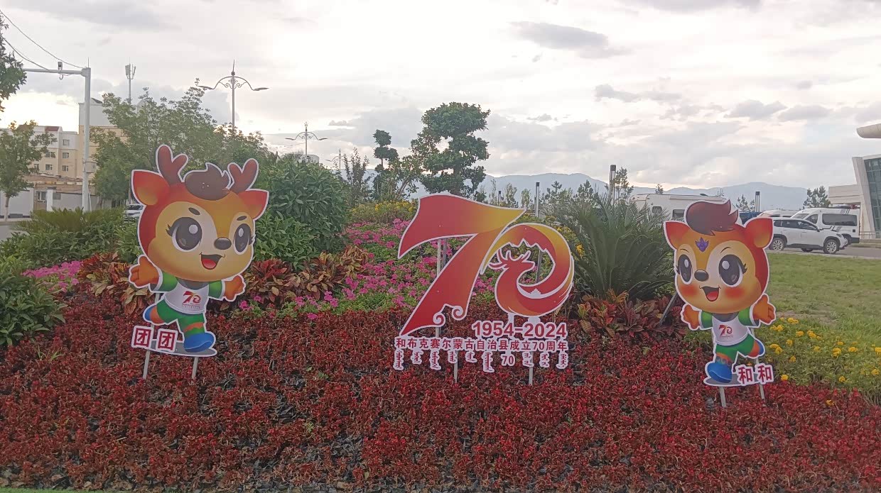 7月28日:继续出发到吉木乃县,途经沙漠和草原石城,经过达和布赛尔蒙古自治县,看到正在举办庆祝成立七十周年庆。决定在此逗留,不知为何在和布赛尔网上无法定酒店,只好开车找,正好离广场不远有家酒店,就近入住酒店。逛街,到处都是红红绿绿的庆贺海报,很是好看。新疆的羊肉和牛肉好吃,买了一斤多的羊肉和青菜,晚饭自已做。晚餐后就去看年庆彩排。很是热闹。穿着民族服饰美女很多,很乐意一起合照,并礼貌地说欢迎来新疆玩!尤其是当地为了旅游业专门划出外地游客停车区,并有大牌子警示。