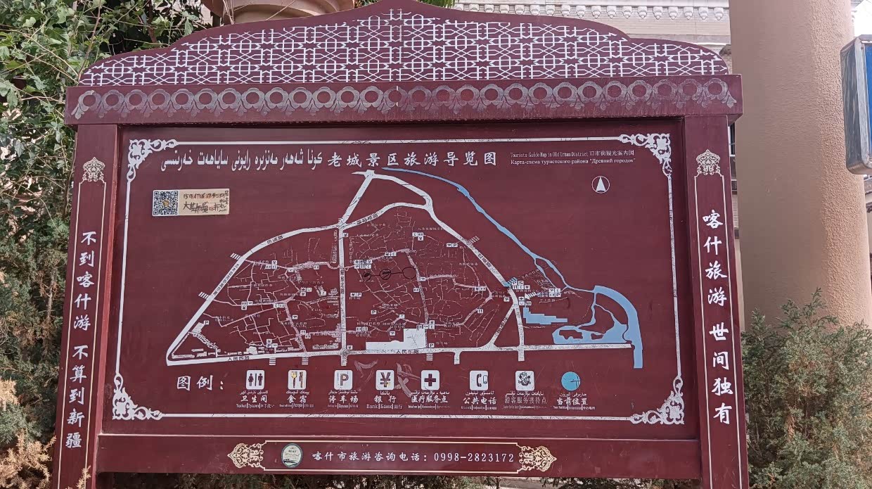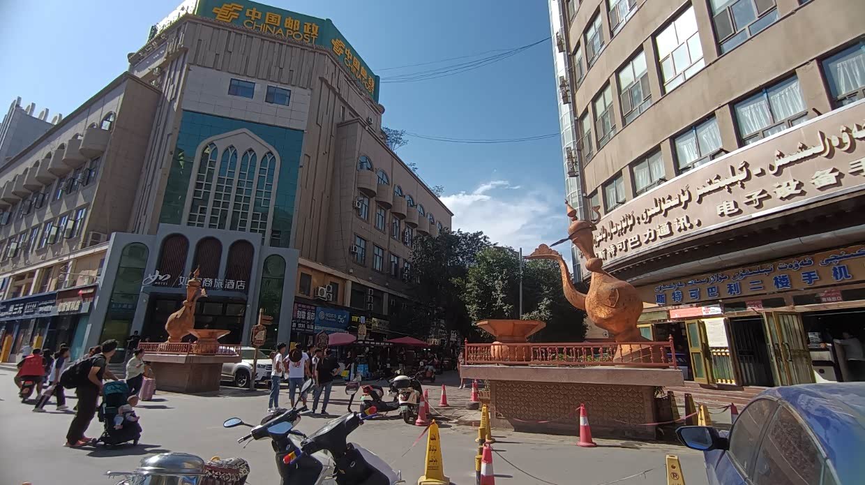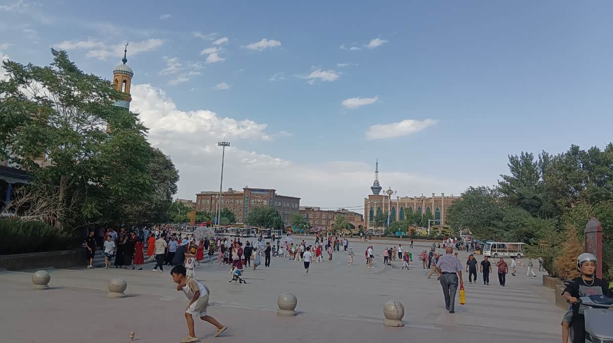 8月11日:早上去阿克苏博物馆参观。在停车场有台上海车牌的房车,和车主聊了会,并上车参观,小伙是福建人。带着几个孩子出来玩。完后向喀什前进。下午五点到达喀什,停车很难,酒店安排保安带我停到了消防通道。并要求把车锁匙交到前台。有车位就帮我停好。这是进疆后第一次停车难。也是第一次见到收停车费的城市。逛喀什古城,对严重商业化的古城兴趣不高。买了两斤牛肉干,在出口吃上了烤全羊。到喀什人民公园转了转。