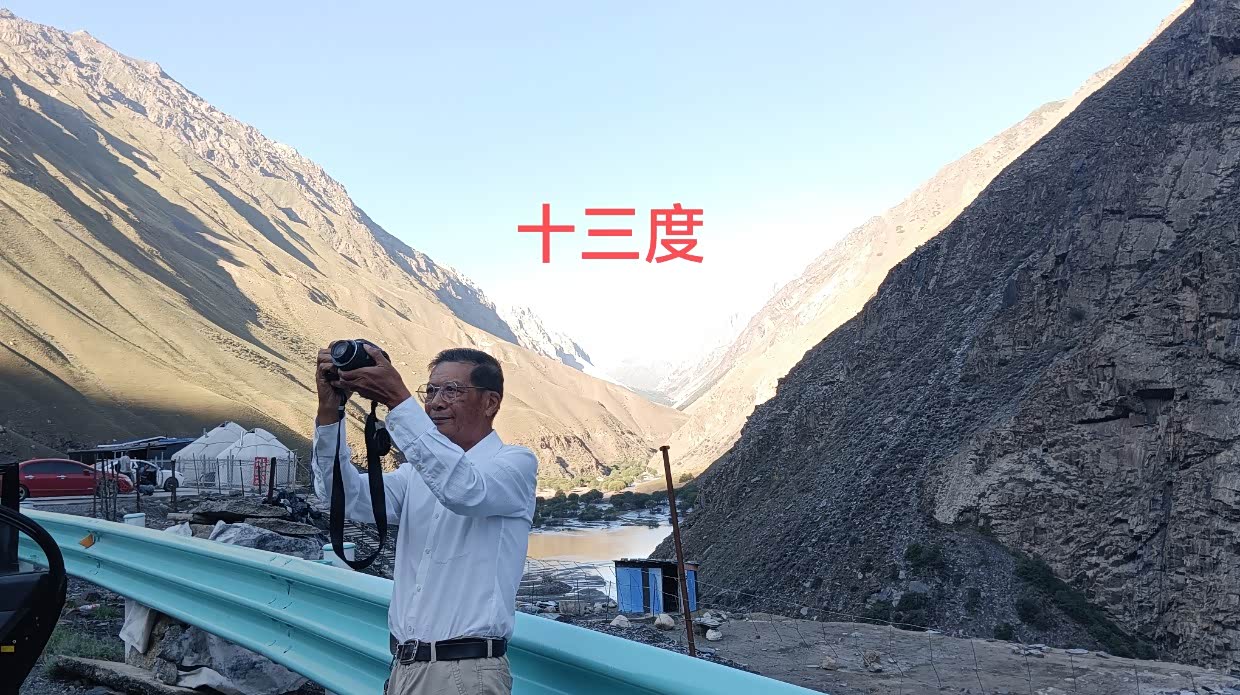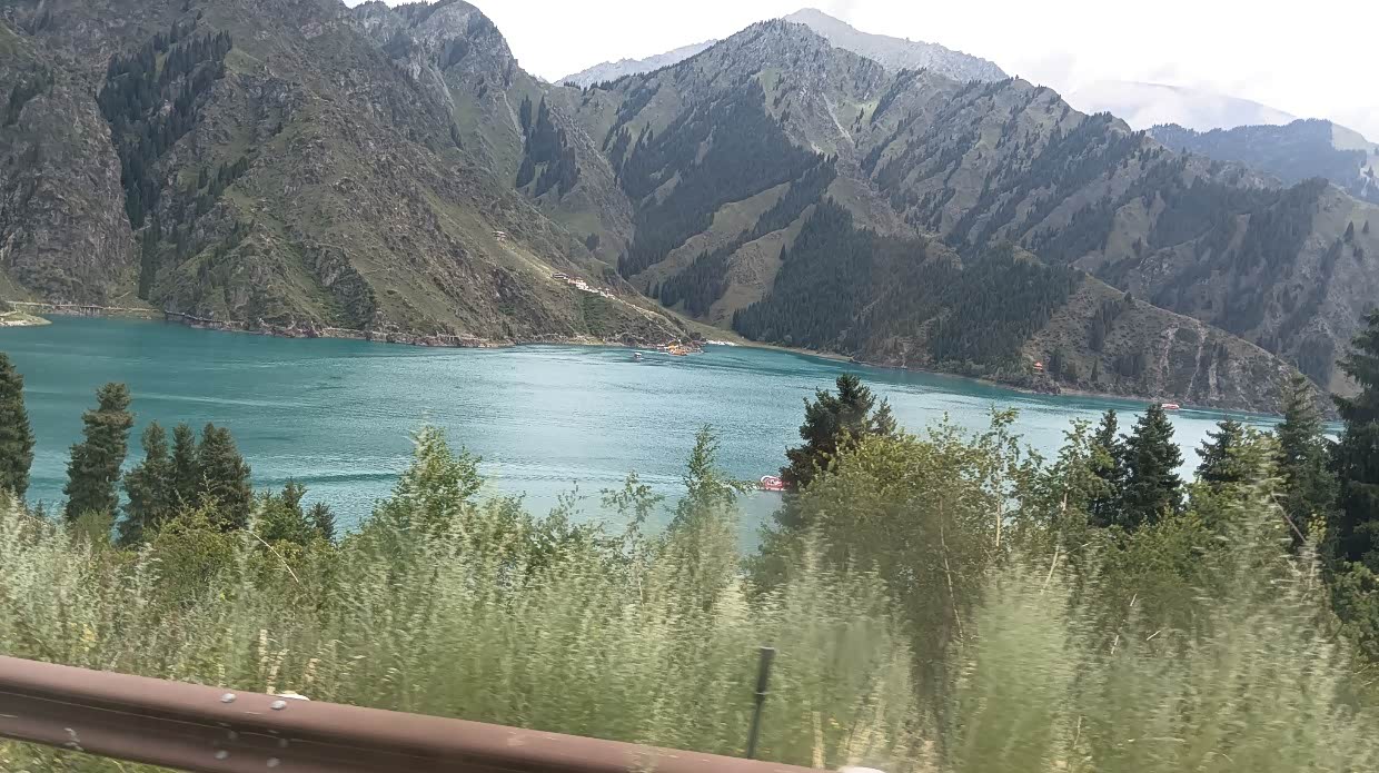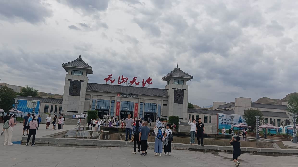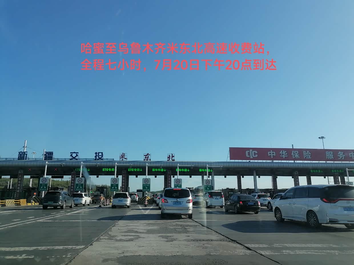 7月22日:今天去天山天池。几十公里的路程,早早就到了天山天池景区,好大的停车场。值得一提的是新疆基本上停车是不收费的,包括景区都是免费停车,只有喀什收停车费。新疆所有的景区对65岁以上的人免门票,但交通费用不免,60岁至64岁享受半票。天山天池景区我是免门票,太太半票,两人总费用大137.50。坐摆渡车上山,先到民族风情街,实际上是个商业街。上到天池可见一大湖景,实话说并不怎样,天池那的温度显示是16度。从天池那还可以继续坐车上山,但价格却很贵,两人要330元。山上的温度很低,可见雪山。说实话对于我们来自南方的广东,这天山天池景色真的很一般般,从某种程度来说还不如肇庆的鼎湖。哈哈!从天山下来,就转去阜康市。到了阜康市里,想吃米饭,已好久没吃米饭了。结果找了好多家都没米饭吃,最后找了家说有米饭吃的饭店,要了只大盘芦花鸡,结果上来一看失望了,大盘鸡内有一起煮的馕片,又没饭吃,一只鸡两人都没吃完,打包回酒店,明早煮面条吃。可怜!酒店的老板很热情,坐下一起聊了许久。