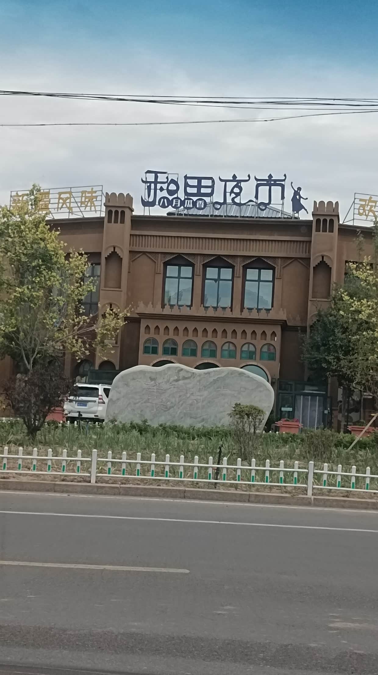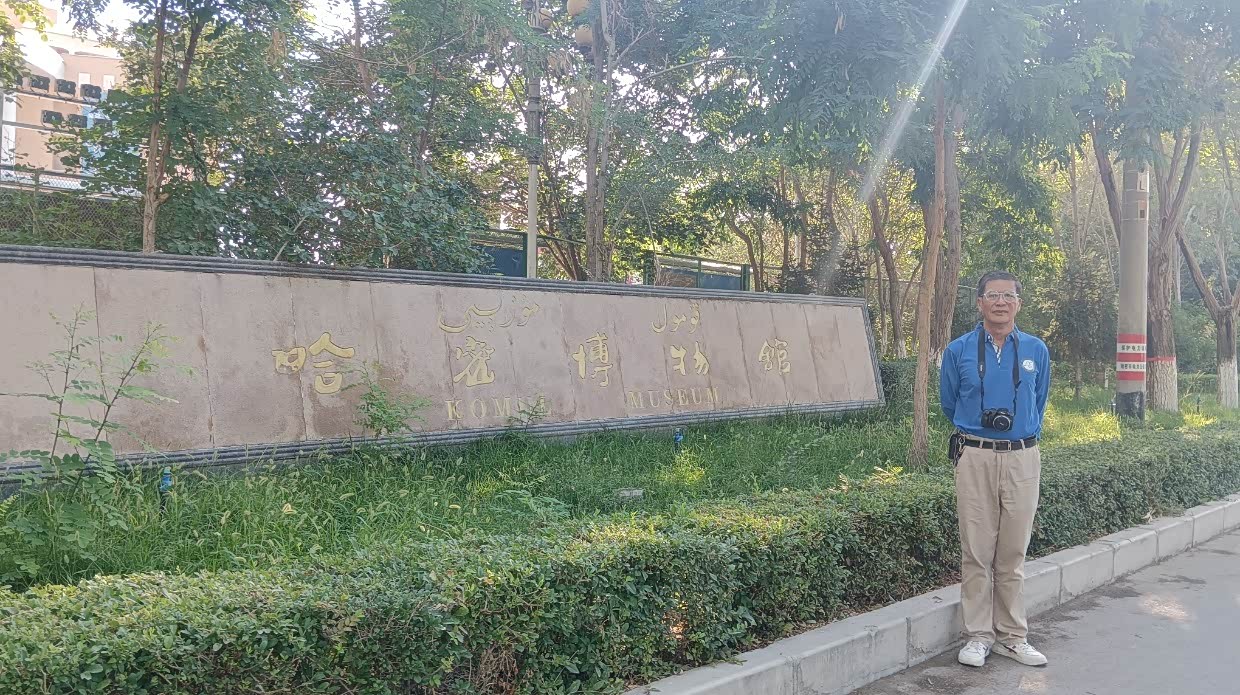 7月19日:早上把拍照的像转存到脑中,完成后大约十点,出发去哈密。沿途可见戈壁滩,稀有树木。进入哈密的第一个公安检查站,警察很认真地检查每个人的身份证,并要每个人要对准摄像头。过了检查站加了入新疆的第一箱油,感觉到了新疆的治安管理,进油站先要过关卡,扫身份证后才能进加油站,停好车后,加油员还要拿车主的身份证刷一下才能加油。到新疆自驾游必须要注意车的油量,新疆地域太大了,有很多的无人区,我们走的最长无人区应是从民丰到轮台的沙漠公路有500多公里的无人区。区域相隔太远了,加油不易!这是值得注意的!下午5:30到达哈密,由于修路和导航的原因,绕来绕去终于来到了定好的酒店。由于修路酒店的停车场被封,而不能停车,总台姑娘说:“可以停在路边,你是外地车,不会抄牌的”。这是首次进新疆感觉到新疆人对外来游客的关照,后面还有新疆人对外来游客的特殊关照,难怪新疆游这么热。无奈只能停在路边,到达哈密的温度是43度,下车感到热,但在树阴地方就不觉得热,有风!傍晚我们到菜市场买菜回来时,沙尘暴来了,天空黄黄的,吓的赶紧跑回酒店。晚间又下起了雨,第二天早上看见我那爱车脏脏的,惨不忍睹!除了尘土还有那吹落的槐花布满了。
