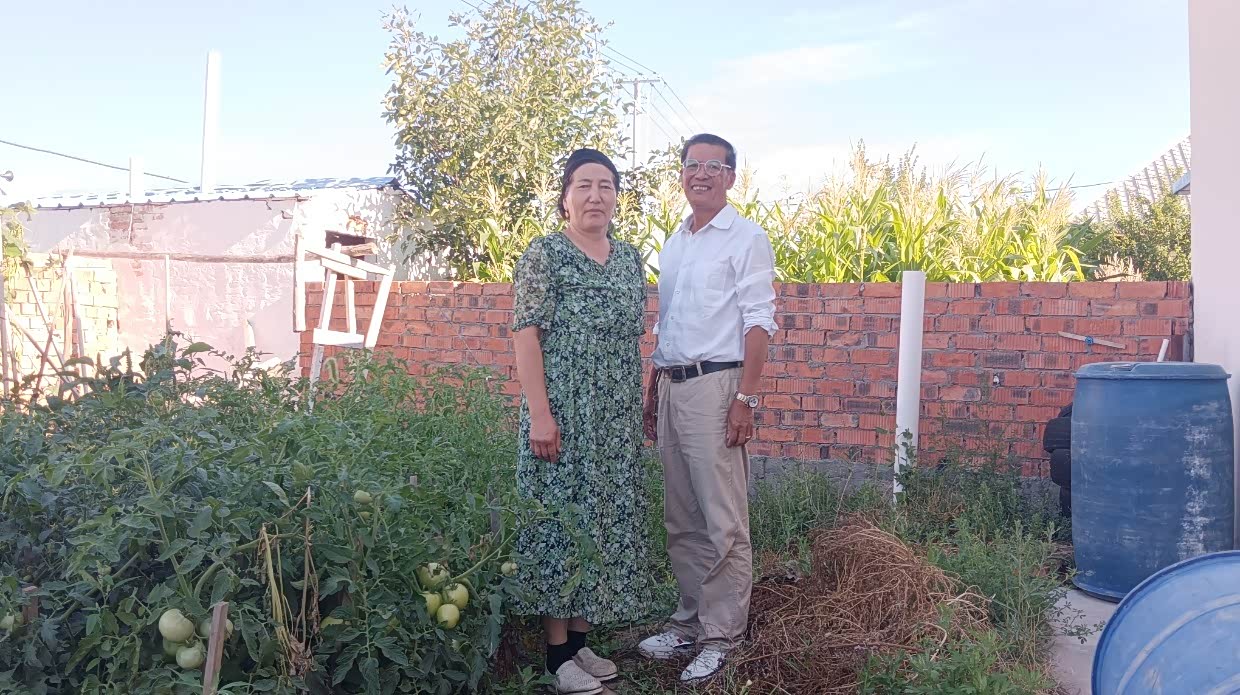 和凯丽玛在菜园中合照