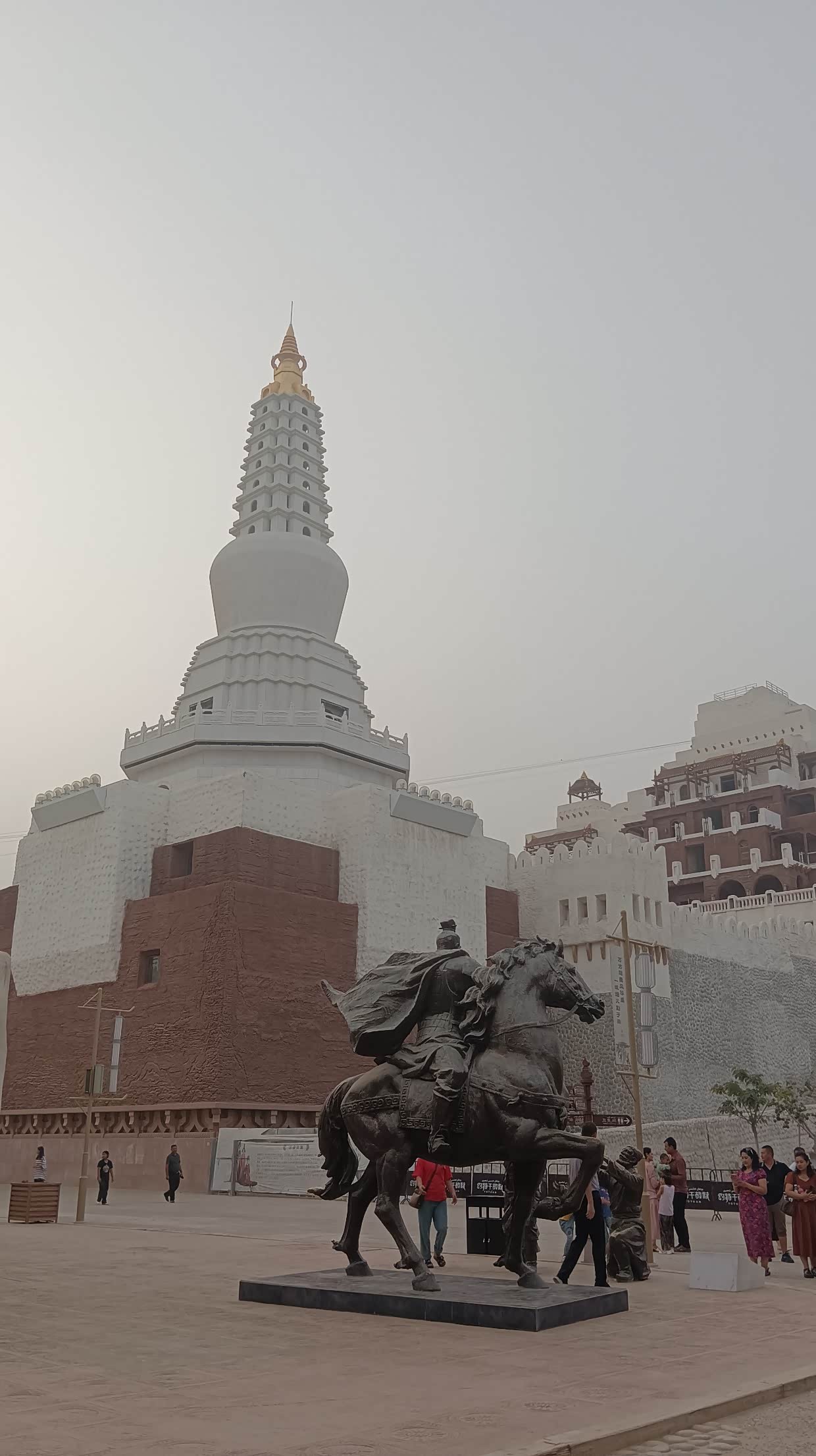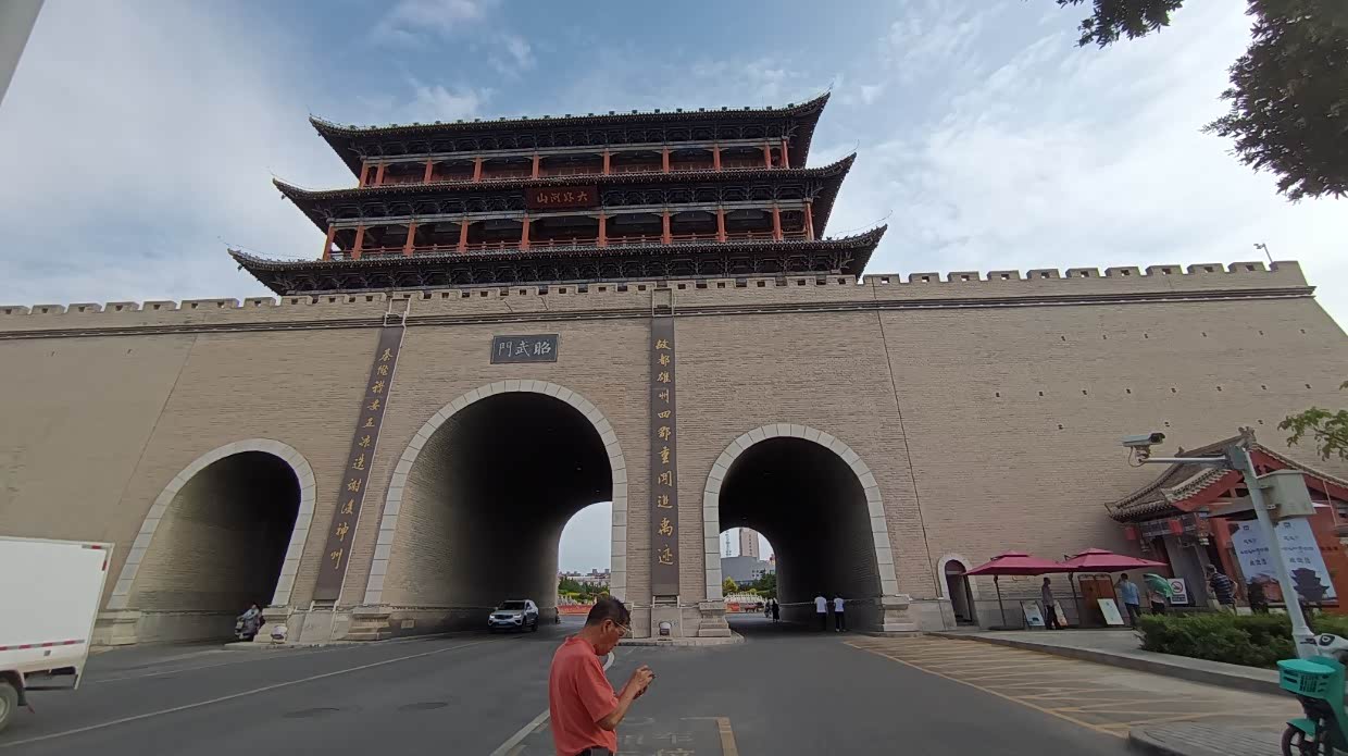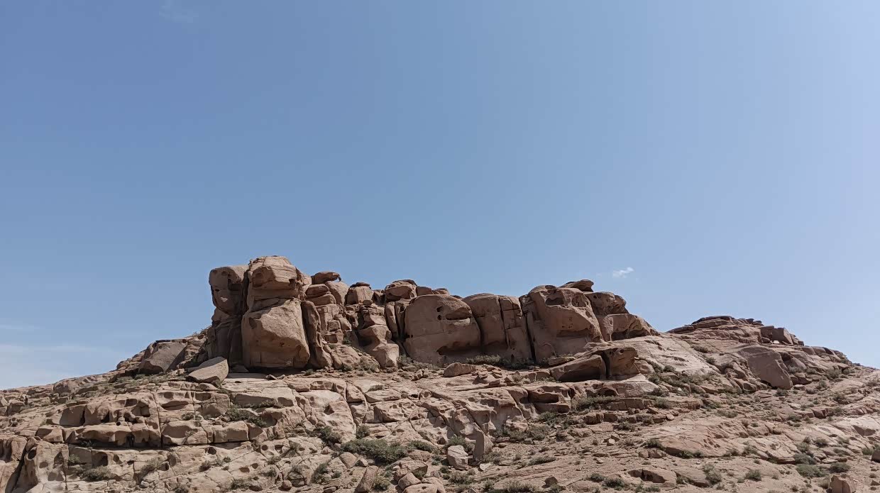 7月18日:上午去大佛寺浏览,大约十点继续沿国道向玉门进发。出发前出了点小事,收拾行装时由于装锅碗的包我放在车旁边,就去服务台办停车免费手续,办好就催太太出发,太太也没注意到我放在旁边的袋子,就上车出发了,车开动就听到异响,停车一看原来把那袋压到了,锅和锅盖压变形了,压碎了几包快速面。所以开车前不要着急,必须检查一下周边。途经一个空军基地附近的农贸市场,很是热闹!买了个白兰瓜等等。下午四点到达玉门市,入住玉合大酒店。导航把我们带到了酒店的后门,后门不开,进不去,只好打电话询问,转了一圈才进到酒店。安住一来后,想办法修复那压坏的锅和锅盖,终于用菜刀把锅和锅盖基本修复可用。哈哈!原计划要去敦煌的,但在网上定票查看竟然要定到26号后才有票,决定不去了。可惜了那著名的玉门关,春风不渡玉门关,只剰下两个土堆。直接进疆!
