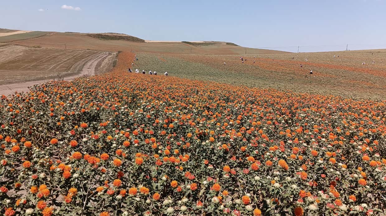 7月31日:早起去双塔公园舞龙,去农贸市场买了些青菜,饼等等。出发去塔城口岸。在免税商场买了奶粉,风干牛肉和奶制品。尔后向阿拉山口市进发。途中看到许多人在采摘红花。下午五点到了阿拉山口市,入住陕西商务酒店。上街买了牛肉和马奶。晚餐吃蒸牛肉,牛肉萝卜汤。