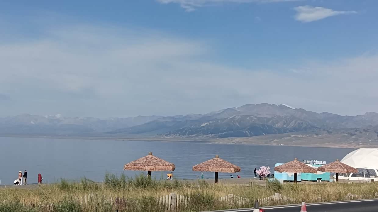 8月2日:一早出发去赛里木湖,9:00到达景区北门,停车取票,在取票机上取票,由于票机故障只取了一张票,和工作人员沟通同意我们进入。围着赛里木湖转了一圈。下午三点游完。刚开始感觉赛里木湖很美,但转到后面可能是视觉疲劳,就不觉得了。特别是下午天转多云,少了蓝天。游完后,就向双河城出发,4:16到达所定的宾馆。休息了一会就去逛街,买了车遥控电池,买了只卤牛蹄和青菜水果。晚餐做了牛蹄炆苦瓜。饭后散步又买了馕。