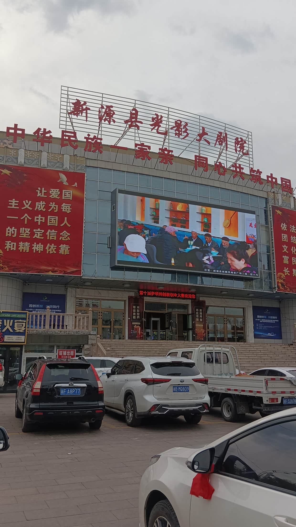8月7日:离开伊宁前往新源县,路上下大雨,到新源还在下雨。入住了新源富邦宾馆。今天买一斤牛肉,一斤羊肉和青菜。午饭吃牛肉,晚餐吃羊肉。一天两人吃了一公斤的肉!去新源人民广场舞龙。逛夜市。发现一个现象,卖牛羊肉的刀都用根铁链栓住的,我开玩笑问,卖肉的小伙笑嘻嘻地说:我们少数民族好热血沸腾,易冲动。哈哈!