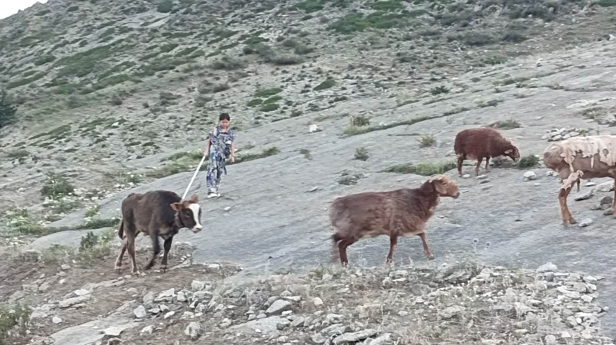 7月23日:吃饭昨晚的芦花鸡煮面条,去可可托海。定了维族民宿,才72元一晚。下午三点多就到了,一个小伙子接待我们,年纪大的听不懂汉语,只有年轻人会汉语。安排好住宿。开车去可可托海博物馆,遗憾的是不开馆,转去可可托海矿山公园,了解了可可托海的发展。回到民宿,又有一对来自吉林的教师夫妇,聊天中那女士说:开车不累,坐车的累!哈哈!在民宿前有条很清澈的小溪,那水清凉透澈,在溪边有一家来自重庆的游客,一家大小在小溪中玩耍。和男车主聊了一会。晚餐吃手抓羊肉和米饭(终于吃到米饭了)。饭后我们爬上民宿的后山,见到一群羊,其中有一只可爱的小羊羔,我们也学着羊羔的叫声和羊羔对话,可爱的羊羔随着我们的叫也回应。可爱极了!八点了天还十分明亮,和接待我们的小伙子聊天,原来他刚考完高考,他很娇傲地告诉我们,被昌吉学院录取了,学电气专业。下个月就要去昌吉上学。聊到十点,我们说要休息了,他却说:我们的夜生活才刚开始。