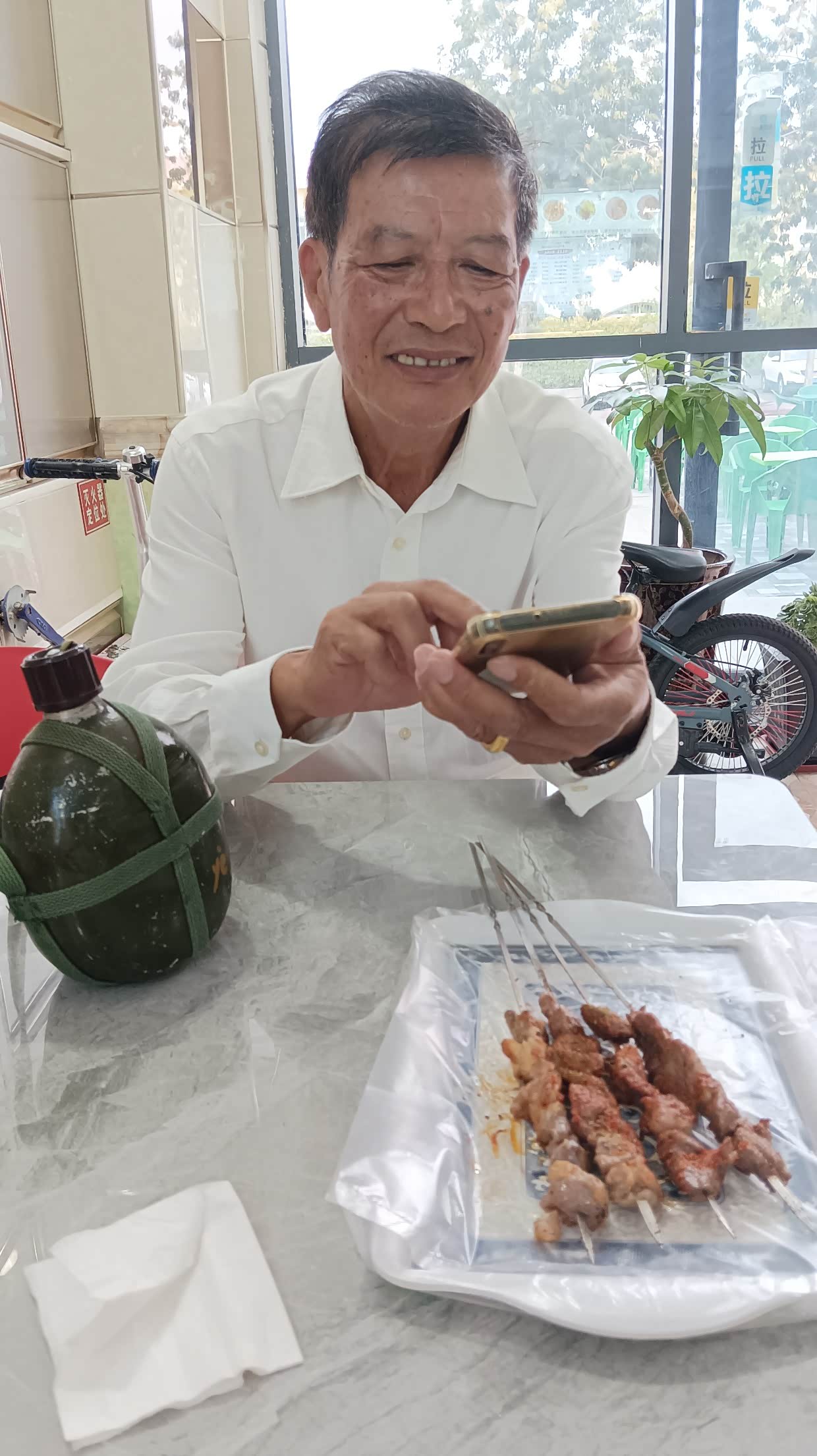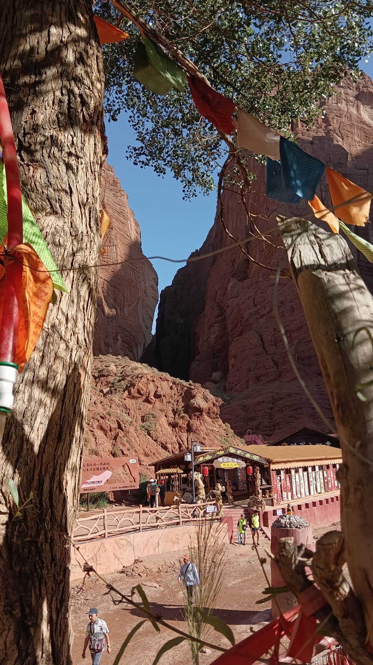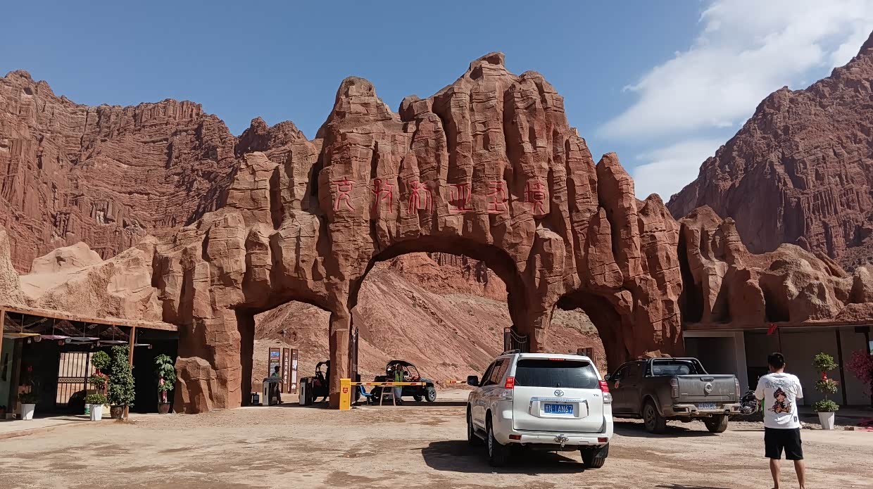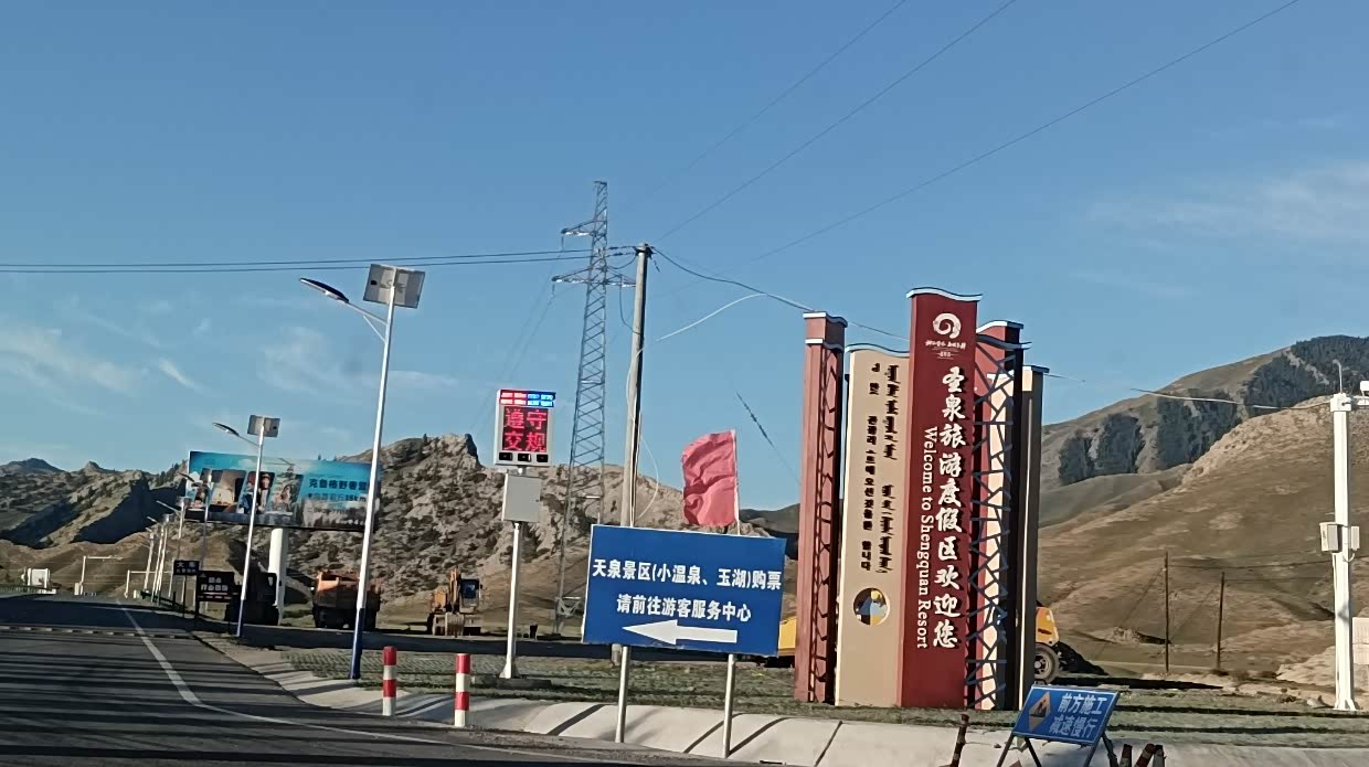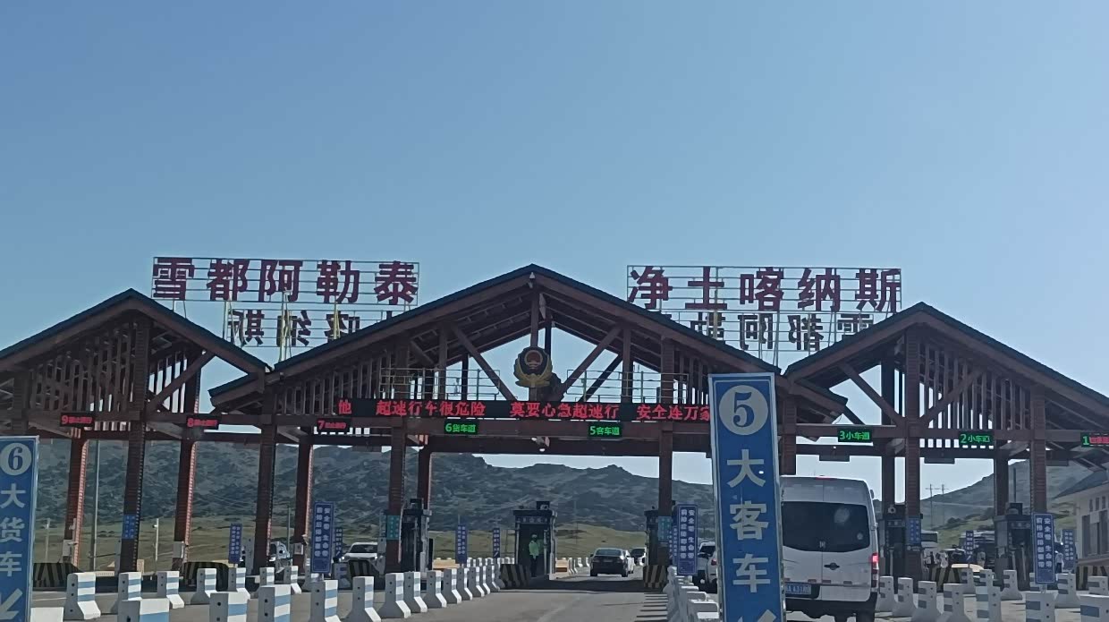 8月1日:早上起来,查看到国门游的要求,需要预约,马上预约,但只能预约到12:30的了。9:00去到国际客运站国门服务中心。请求改签第一批游11:30。在等待中,认识了来自南京的朋友,大家是同年龄的,他是从南京到海南岛,又放醋不西藏,从西藏走219国道来的。厉害!到了国门一游,有些地方禁止拍照。12:18游完了出来。来新疆一直想试试手抓饭,但一直都没吃着,具说晚上不吃手抓饭的,所以我们晚餐问了很多的饭店都说没有。和酒店老板聊天时说起手抓饭之事,他告诉我们在博乐有个叫一号手抓饭,你去的路上经过,只要在二点前赶到就有的吃。游完国门,就马上出发去博乐吃一号手抓饭。终于赶到了也吃上了。这一号手抓饭真热闹,挺多人来吃。下午4:30到了博乐自治州温泉县安格里格镇入住。预定了明天自驾赛里木湖的票,两个人282元。