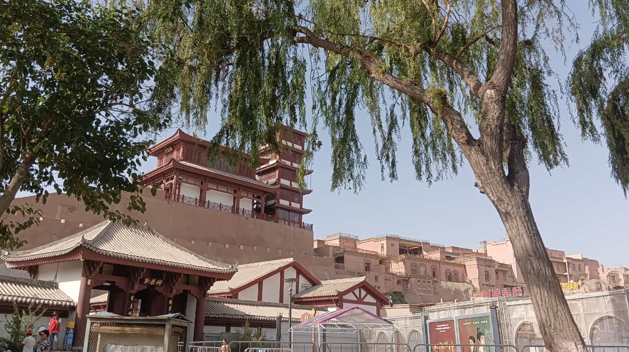 8月12日:早上又去喀什古城,原来喀什古城被解放路分成了东西两部分,古城正门在东区。到正门打卡。从古城回到宾馆,收拾好行装离开喀什去和田。下午五点到了和田。入住和田西域酒店。休息一会,打滴滴去特干故古城,在附近吃了手抓饭。进古城,晚上十点才回到酒店。