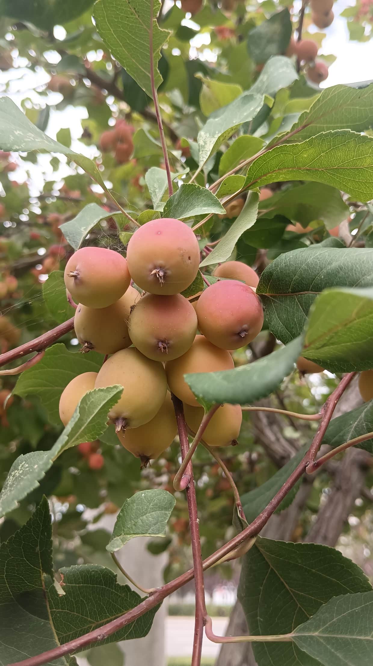 树上结满了果果。但不知 是什么果.。
