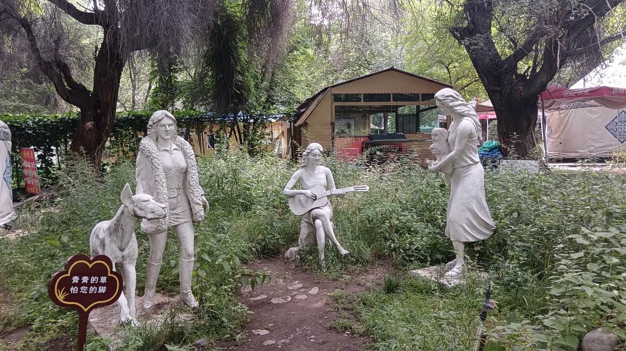 8月6日:离开捷晨宾馆前向老板娘投诉卫生问题,老板娘歉意的说:对不起,由于脚受伤了,这些时间不能上楼,没有注意到。我们向伊宁进发。11:00就到了伊宁龙泉宾馆。休息了一会,我们就开车去托乎拉苏景区游玩。托乎拉苏是我们来到新疆看到的最美的景色。可以说这包揽了新疆美景。百里画廊都不如它,百里画廊有的这也有,而它有的百里画廊却没有。加之这里人少车少,费用又极便宜,我们俩人连车一共才30元。当看到成群的牛羊马在草原上,那才是美。真的后悔了开了房,好想在这草原上露营!下午6:20回到宾馆,去买羊肉,在路边有三位老人在喝饮料,见我们很热情地打招呼,并倒了一大杯饮料请我们喝。出于礼貌接过饮料一喝而光。老人问我们从哪来,去了新疆啥地方,住在哪个宾馆等。和老人们拜别回到宾馆,晚餐后,去逛夜市,夜好热闹。