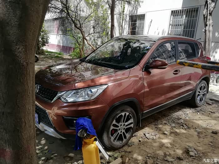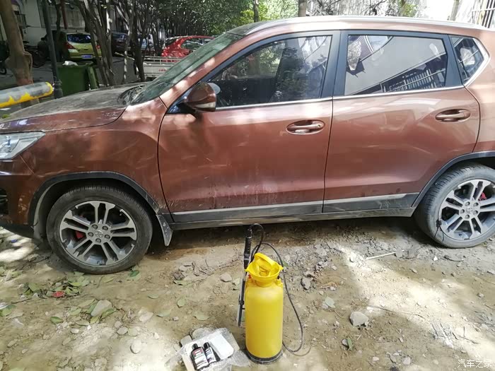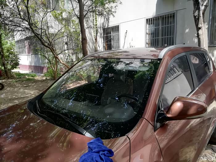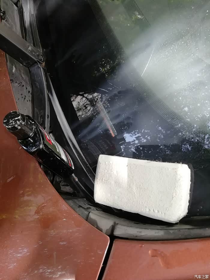 为了完成测试已经该洗的车也一直没洗,经过昨夜晚一场小雨,车已经变泥猴了,拎上加满水的打气的洗车机,拿上汽车玻璃清洁油膜去除剂和超浓缩雨刷精和我自制的清洁擦下楼完成艰巨的工作,具体看图吧。