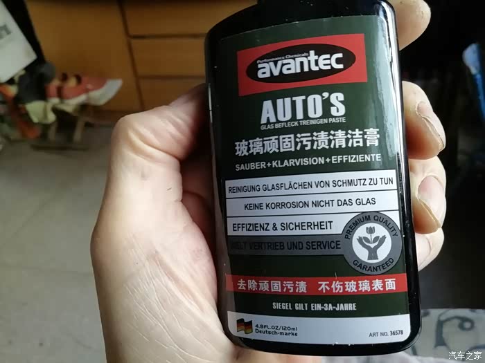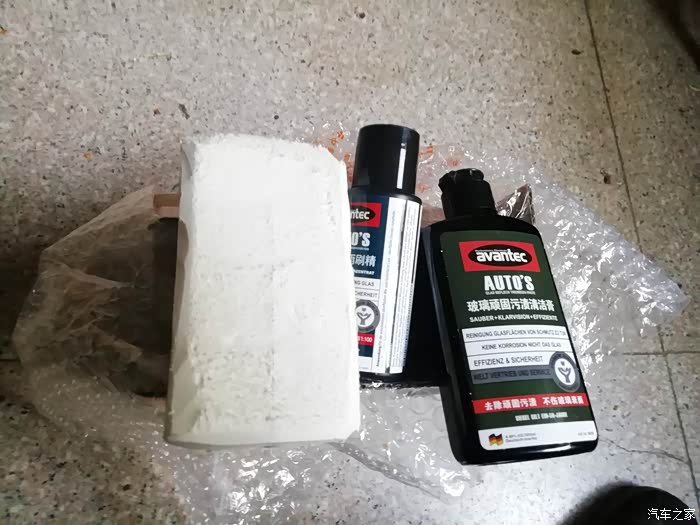 说实话,汽车前档玻璃是否干净是很重要的,尤其到晚上,对面有车辆灯光时,稍不干净就会白茫茫一片,会影响行车安全,因此我早就自己配制了玻璃清洁剂,使用效果还行。